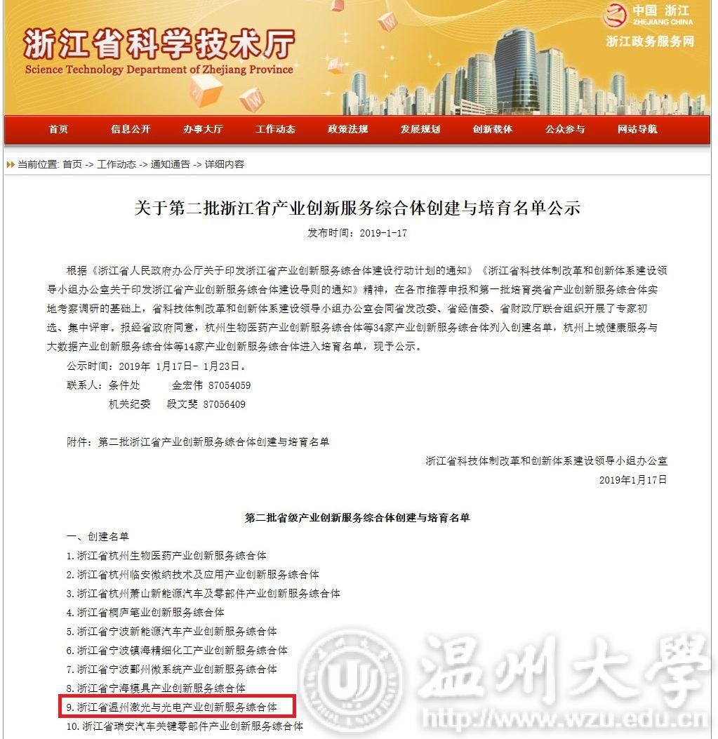 近日,浙江省科技体制改革和创新体系建设领导小组办公室公布第二批浙江省产业创新服务综合体创建与培育名单,日本a片 激光与光电智能制造研究院作为核心运营单位的浙江省温州激光与光电产业创新服务综合体列入创建名单。