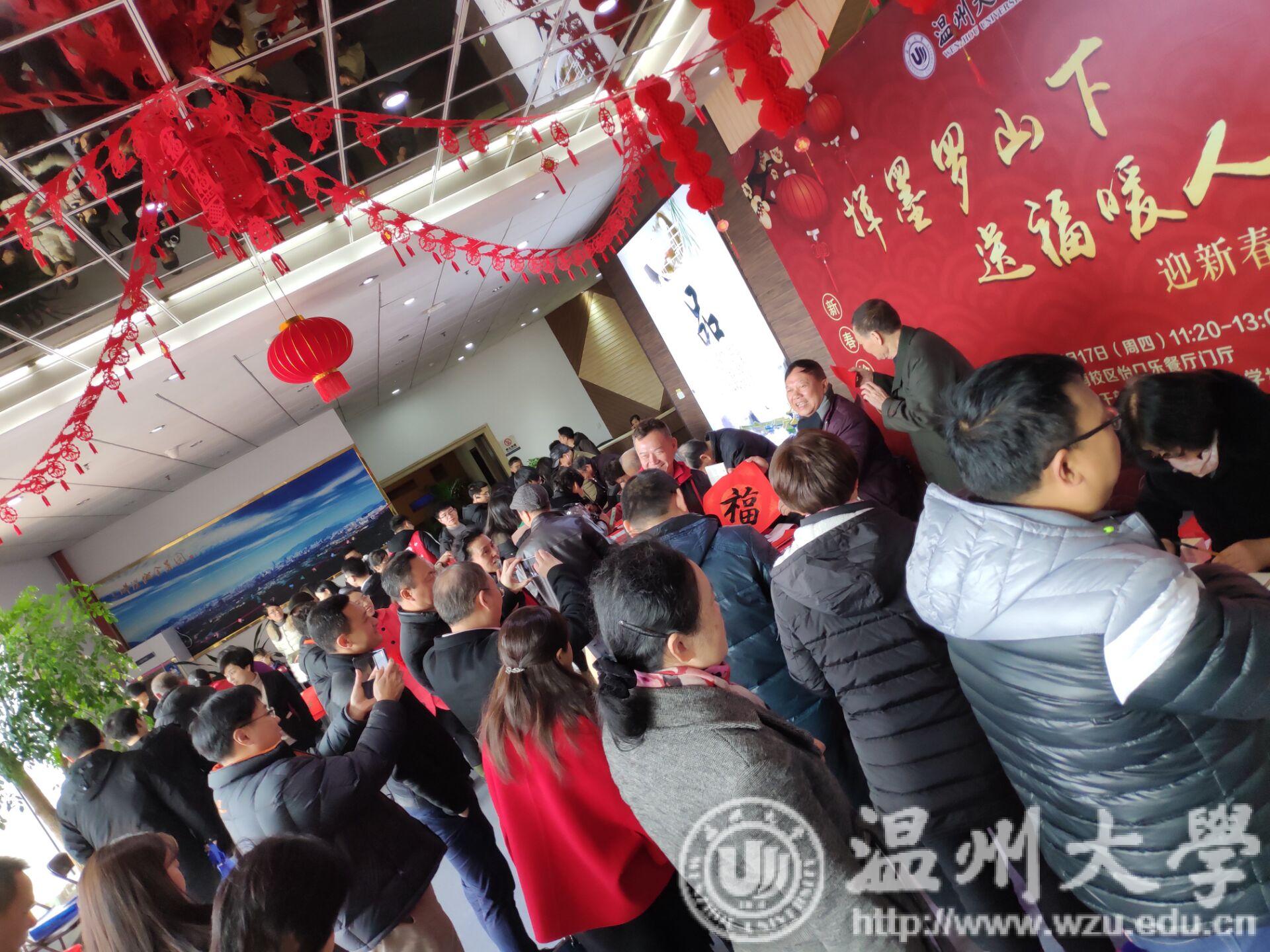 虽时值寒冬,但活动现场却人头攒动、暖意融融,一片热闹景象。现场19位老干部书画家现场挥毫泼墨,书写出一幅幅饱含祝福的春联和充盈喜庆的“福”字,引得在场师生阵阵赞叹。“岁通盛世家家富,人遇年华个个欢”表达了辞旧迎新的美好愿景,“风调雨顺颂华年,国富民强歌盛世”“和谐社会岁更新,美丽中国春不老”歌颂了党恩、赞叹改革开放40年伟大成就……副副春联写出了广大师生对新年的期盼,描绘了大家对美好生活的憧憬和向往。