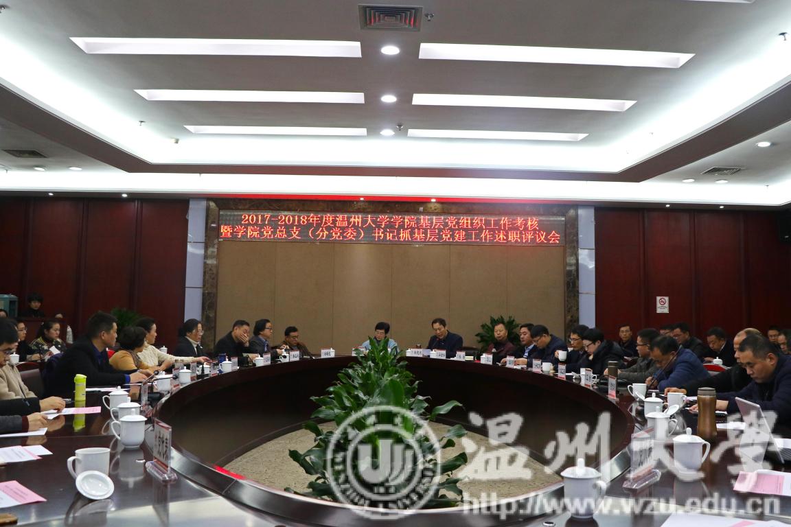 1月7日上午,日本a片 2017-2018年度学院基层党组织工作考核暨学院党总支(分党委)书记抓基层党建工作述职评议会在南校岩松堂白鹿厅举行。校领导林娟娟、薛伟、吴金法、蔡曙光、钱强、潘玉驹出席会议,党群部门负责人、各党总支(分党委)书记、党代表、教代会执委和工会委员代表、一线教师代表和学生代表等共60余人参加会议并作测评,校党委副书记牟德刚主持。