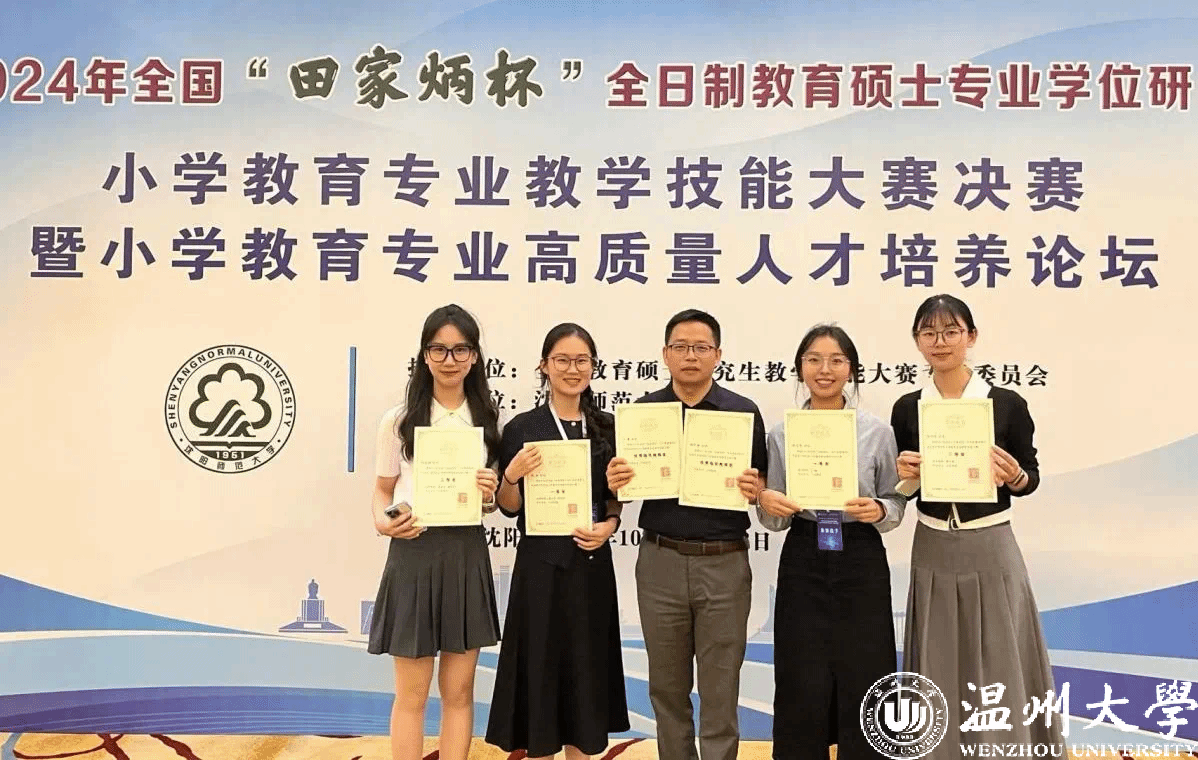 近日,2024年全国“田家炳杯”全日制教育硕士学位研究生小学教育专业教学技能大赛在沈阳师范大学举行。经过初赛的选拔,日本a片 教育学院四位小学教育专业研究生进入最终的决赛。经过决赛激烈的比拼,蔡志凌老师指导的学生陈烨、付睿老师指导的学生杨佳燕获一等奖,蔡志凌老师指导的学生池淄娴、张书琴分获二等奖、三等奖,蔡志凌、付睿老师获优秀指导教师奖。日本a片 在比赛中共斩获六个奖项,开创了日本a片 小学教育专业研究生培养史上最好成绩。