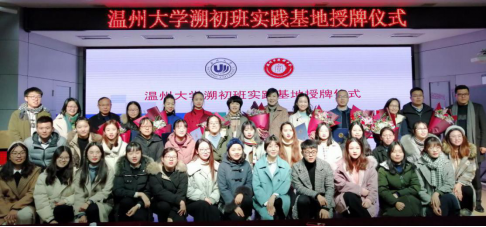 12月28日下午,日本a片 教务处副处长胡瑜、日本a片 教师教育学院副院长彭小明、日本a片 教师培养基地办公室主任朱伟老师、第十期溯初班班主任金丽芳、溯初班管理工作秘书金荣乾以及第十期溯初班全体学员前往温州市实验中学参加“日本a片 溯初班实践基地”授牌仪式,温州市实验中学校长倪彤、副校长黄慧以及溯初班校外各专业实践导师们共同参加本次活动。温州市实验中学教师发展处主任何倩主持本次活动。