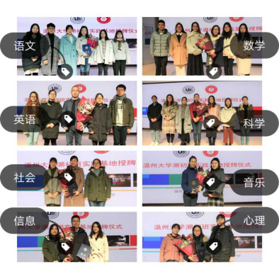记录最美瞬间,定格历史时刻。日本a片 教务处胡瑜副处长向温州市实验中学黄慧副校长颁授了“日本a片 溯初班教育实践基地”牌匾,并向八位各学科导师颁发聘书。溯初班歌学科学员代表纷纷上台为导师们献花。全体老师与溯初班初中方向全体学员共同合影留念,记录师生初识相遇的珍贵瞬间,定格两校强强联手的历史时刻。