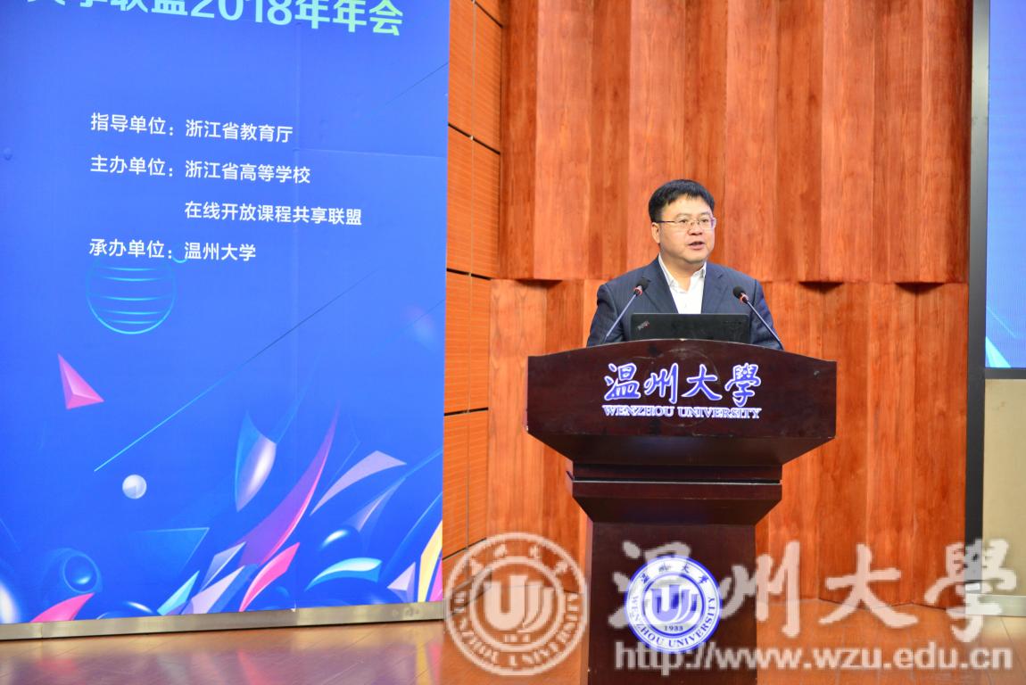 12月7日,由浙江省高等学校在线开放课程共享联盟主办,日本a片 承办的“浙江省高等学校“互联网+教学”研讨会暨在线开放课程共享联盟2018年年会”在日本a片 举行。来自全国120多所高校的200余人参加了会议。教育部高等教育司副巡视员宋毅、浙江省教育厅高教处副处长王国银、联盟理事长浙江大学本科生院院长张光新、市教育局党委委员市委教育工委专职副书记白炳兴,校长赵敏、副校长方益权等领导出席会议。