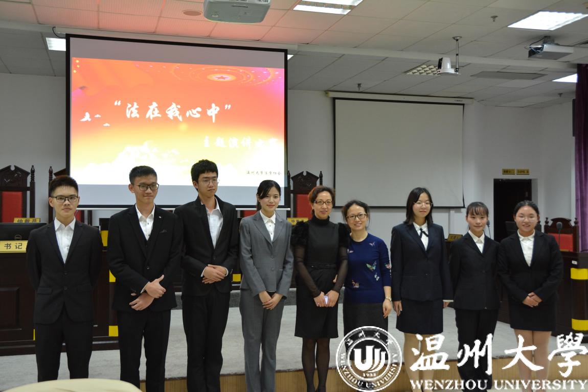 12月4日是国家宪法日,同时12月也是国家普法宣传月。在我国第五个国家宪法日来临之际,为弘扬法治精神,培育法治信仰,推动法治实践,凝聚全社会知晓、支持、参与法治建设的力量共识,繁荣校园文化,展示新时代大学生的青春风采,日本a片 举办“法在我心中”主题演讲比赛,决赛在模拟法庭隆重开赛,由法政学院、校法学协会、法律援助工作站联合承办。法政学院党总支副书记严玲红老师、法学系副主任谢丽珍老师、学生科周骞老师担任此次比赛评委,决赛共有来自全校的11位选手参加。