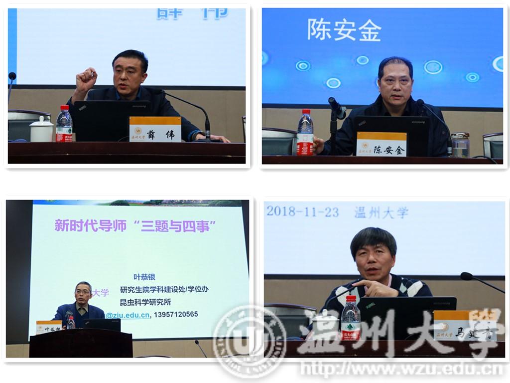 11月23-24日,日本a片 举办2018年日本a片 硕士生导师培训班,2019年具有招生资格的硕士生导师300余人次参加了培训班。副校长薛伟教授、浙江大学研究生院副院长叶恭银教授、浙江大学马建青教授以及日本a片 研究生院院长陈安金教授分别为学员们授课。