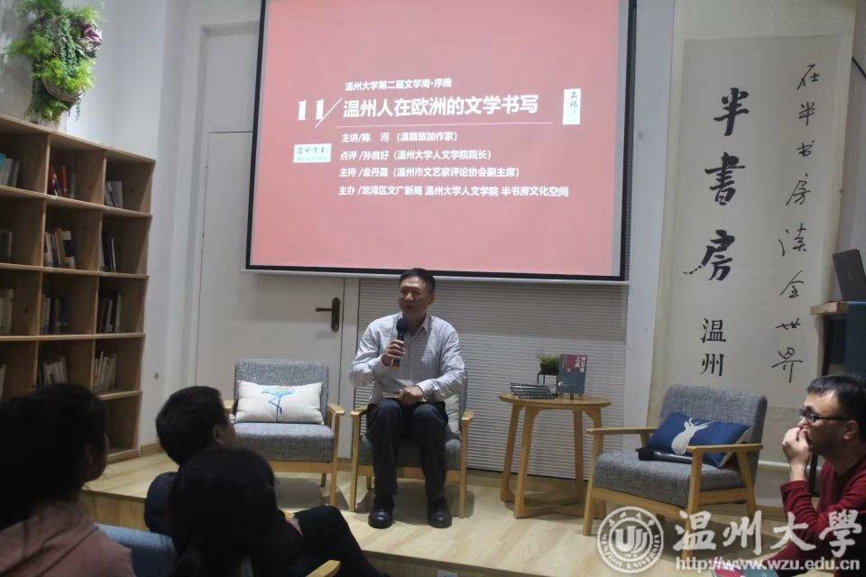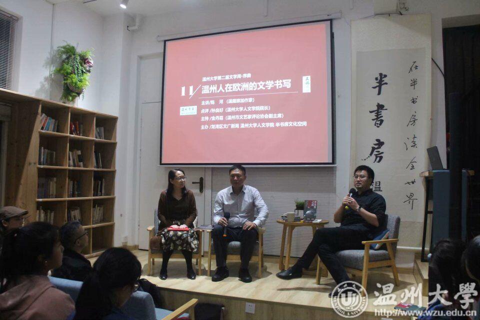 喝茶之前,免不了要来份精美的茶食。在正式进入文学周之前,一道让人惊喜不已的开胃小点先被端了上来。11日晚7时,“温州作者系列”之陈河专题分享会——《温州人在欧洲的文学书写》在温州半书房文化空间举行,由温州市文艺评论家学会副主席金丹霞主持。温籍旅加作家陈河与大家分享了自己颇有些传奇色彩的人生故事及独特的创作经验,他认为十几年异国打拼的经历,正是生活给予他的馈赠。随后,点评嘉宾、人文学院院长孙良好与陈河及同学们相互对话,大家共同探讨了文学写作的理念、技巧以及文学与旅游的关系等。如同被轻纱包裹的茶点,一点点剥开,一口口品尝,令人回味无穷。