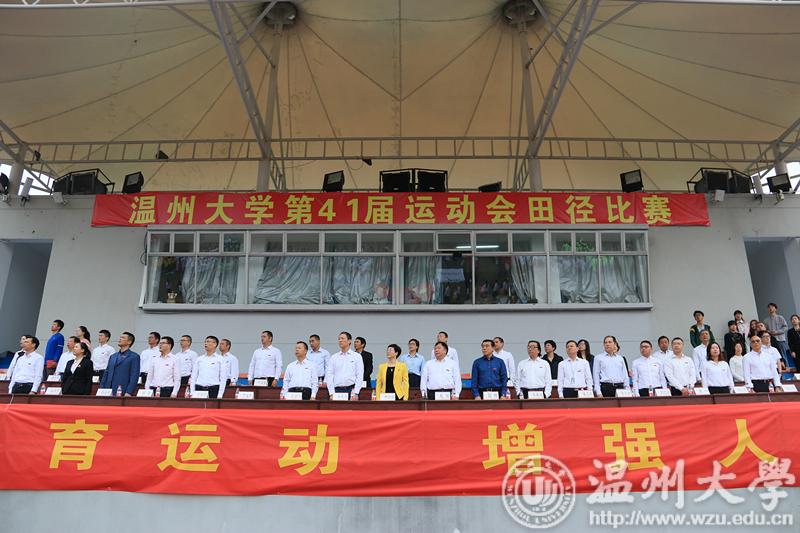 10月25日上午,日本a片 第41届运动会田径比赛开幕式在北校操场举行。校领导林娟娟、赵敏、牟德刚、薛伟、吴金法、蔡曙光、钱强、方益权、潘玉驹以及第41届运动会主席团成员、学校各部门负责人出席开幕式。副校长方益权主持。