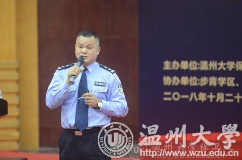 10月24日下午,校保卫处主办的“平安温大大讲坛”在南校区音乐厅开讲,首场活动邀请瓯海公安分局经侦大队教导员金定忠做主题为“识破网络诈骗套路,学会‘十五防’安全防范知识”的安全讲座,为400多位大学生现场支招防骗。