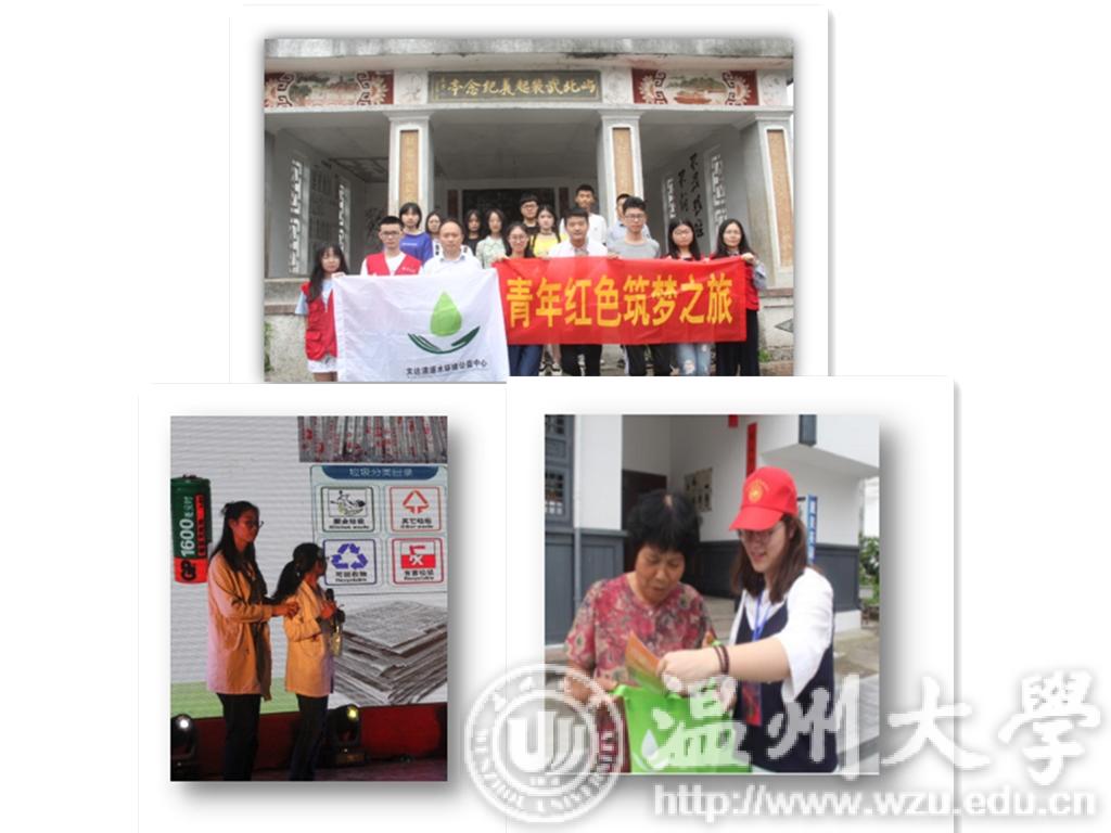今年夏天,以“保卫全面剿灭劣五类水成果,完善水污染治理在基层”为主题,队伍成员又组成了一支社会实践队。31位成员分为两批,一批前往苍南县龙港镇开展生态满意度及农户环境保护支付意愿及其影响因素实地调研, 另一批前往永嘉县岩坦镇参加助力乡村振兴活动。利用所学专业知识开展生态满意度实地调研、开设环保知识讲堂、进行生态规划、帮助古村申请省生态文明教育基地等活动,并将调研论文和生态规划方案上交当地村委、环保局及政府部门,竭尽专业所能,助力乡村振兴。