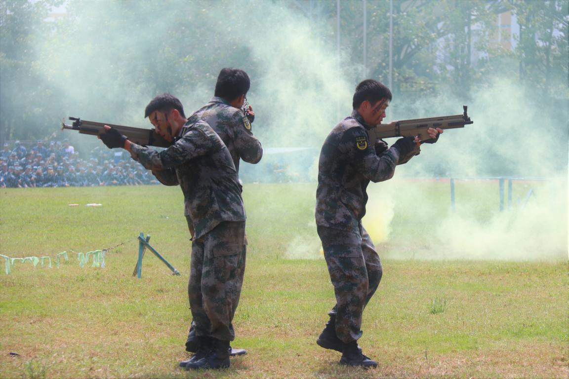大会在庄严的升国旗仪式后拉开帷幕。汇报表演分为分列式、学生女子表演方队、学生男子表演方队、学生教官表演节目、武警教官捕俘拳等表演,精彩的队列和表演赢得了阵阵掌声。金东波宣读优秀教官、先进排、优秀内务寝室、优秀学员表彰名单。与会领导与嘉宾颁奖。
