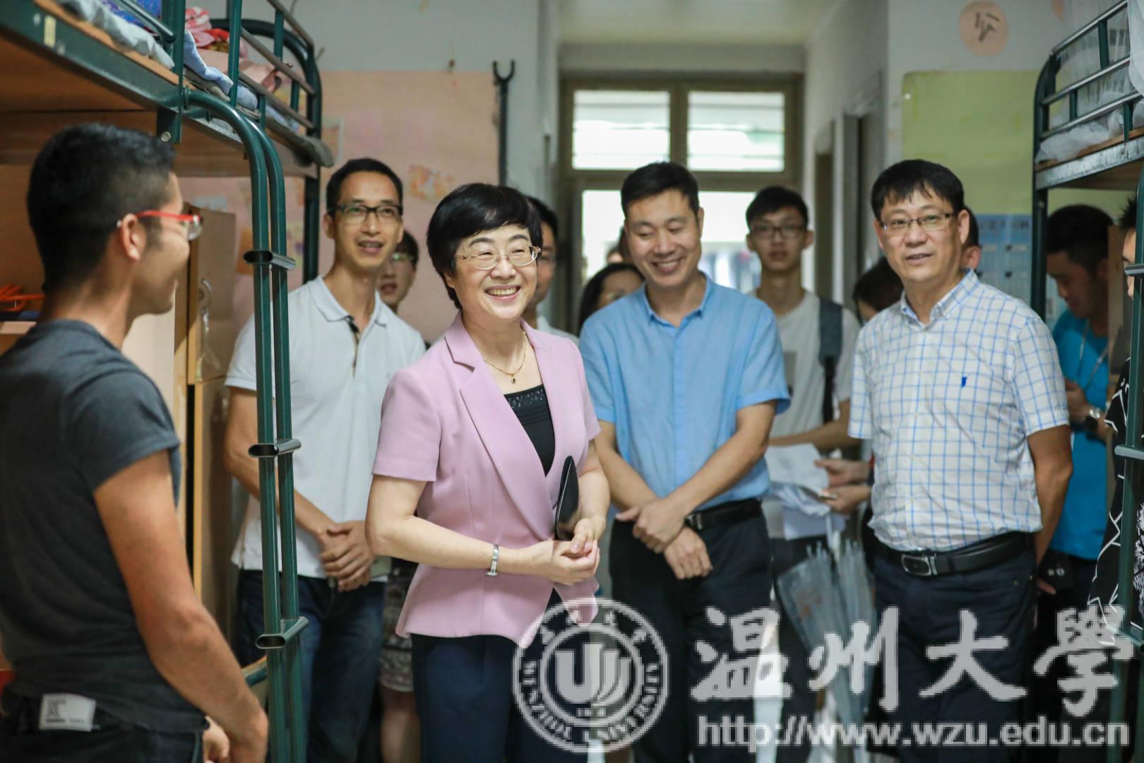 9月11日下午,校党委书记林娟娟,校长赵敏,党委副书记牟德刚以及相关单位负责人一行走访学区,走进新生寝室,亲切看望2018级新生。