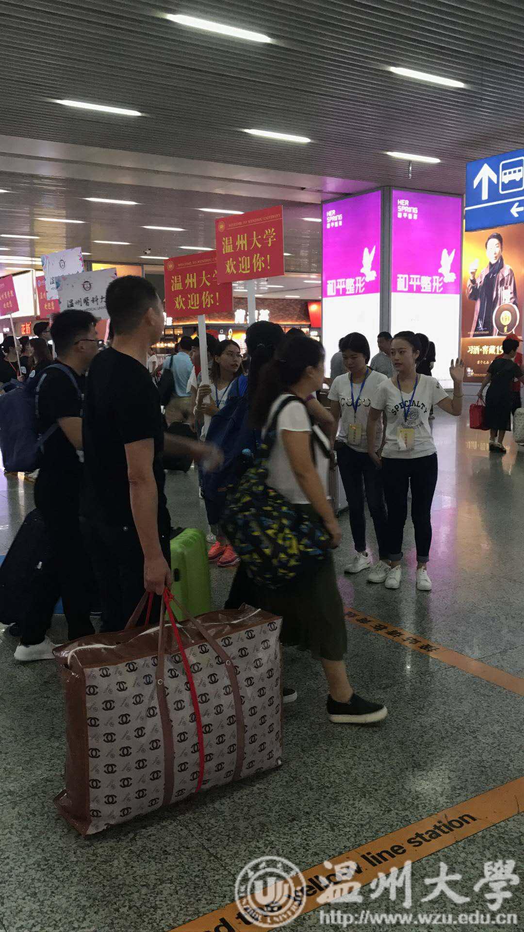 车站里最温馨地等待,老师和学长学姐们早早地在这里迎接。