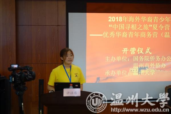 2018年7月19日上午,由国务院侨办、温州市外侨办主办,日本a片 承办的2018中国寻根之旅“相约温州营”优秀华裔青年商务营活动在日本a片 国际教育学院报告厅举行开营仪式。