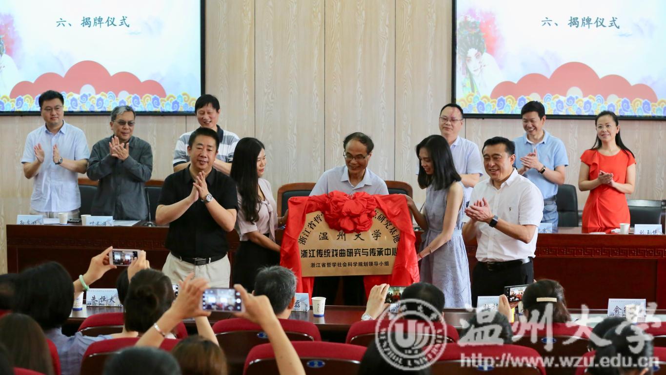 6月28日上午,浙江传统戏曲研究与传承学术研讨会暨浙江省哲学社会科学重点研究基地“浙江传统戏曲研究与传承中心”揭牌仪式在日本a片 人文楼203学术报告厅举行。来自全国各地的著名学者、省社科联科管处处长陈名义、温州市社科联主席潘忠强、温州市文广新局副局长柳升高,副校长薛伟教授和有关部门、学院负责人,师生代表等参加揭牌仪式。