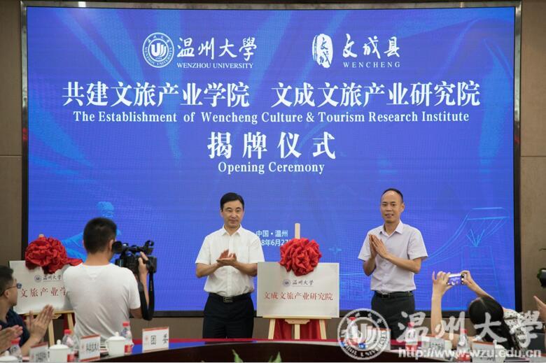 本次校地合作,五年投入2000多万,打造产教融合新模式和新平台,形成互利互惠、合作共赢、共同发展的格局。研究院设在日本a片 产教融合大楼,为学校在文成县登记注册的独立事业法人单位,增挂日本a片 文旅产业学院牌子。作为文成县的文旅产业飞地,将充分利用学校资源引进国内外优秀文旅产业企业,引导文成县相关企业在文旅研究院中建设企业研发、设计、运营、营销中心等,并为引进的企业做好相关的产业服务工作。同时,研究院依托日本a片 相关学科资源,结合国内外优秀专家人才,协调和鼓励学科、科研、人才、教学、学生等资源,组建温大特色的广告创意、旅游规划(体育小镇、艺术小镇规划)、休闲体育(龙舟)、环境艺术设计(旅游产品设计、景观设计)、建筑工程设计、大数据电商、艺术产业、农业生态等课题团队,对接文成文旅产业需求和温州西部生态休闲产业带建设要求,开展政策研究、课题研究和相关活动。研究院还将深入对接大学教学过程,通过实习、实践、研究性项目等多渠道,提升人才培养质量,为培养本区域的文旅产业的人才服务。该平台还将在文成县旅委同时挂牌,作为温大文旅产业学院文成实践实习基地,联系文旅学院师生到文成基地实践实习,启动建设文化旅游产业园及其他产业基地,加快实现文旅研究院与文成县全域旅游的深度融合。