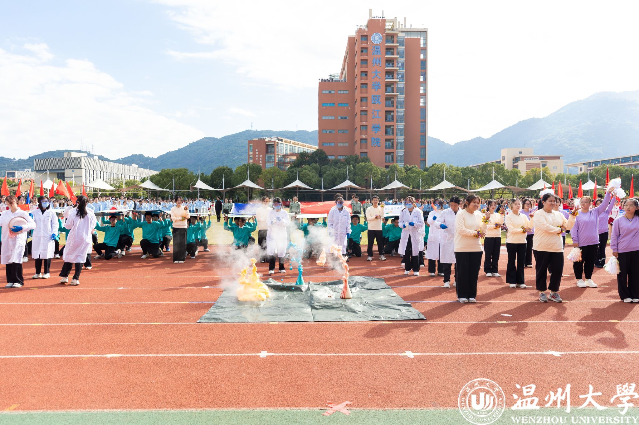 本届运动会共有1163名师生报名参赛,其中学生运动员631名,教工运动员532名。项目设置上更加注重竞技性、群众性、趣味性的结合,教工组增设了“火”速行动项目,学生组增设了5000M长跑。体育与健康学院还组织开展了同期活动“律动温大 一起来舞”校园广场舞活动,以丰富多彩的体育赛事和活动促进师生体质健康提升和科学锻炼习惯养成,持续营造“爱温大、爱运动”的校园体育文化氛围。
