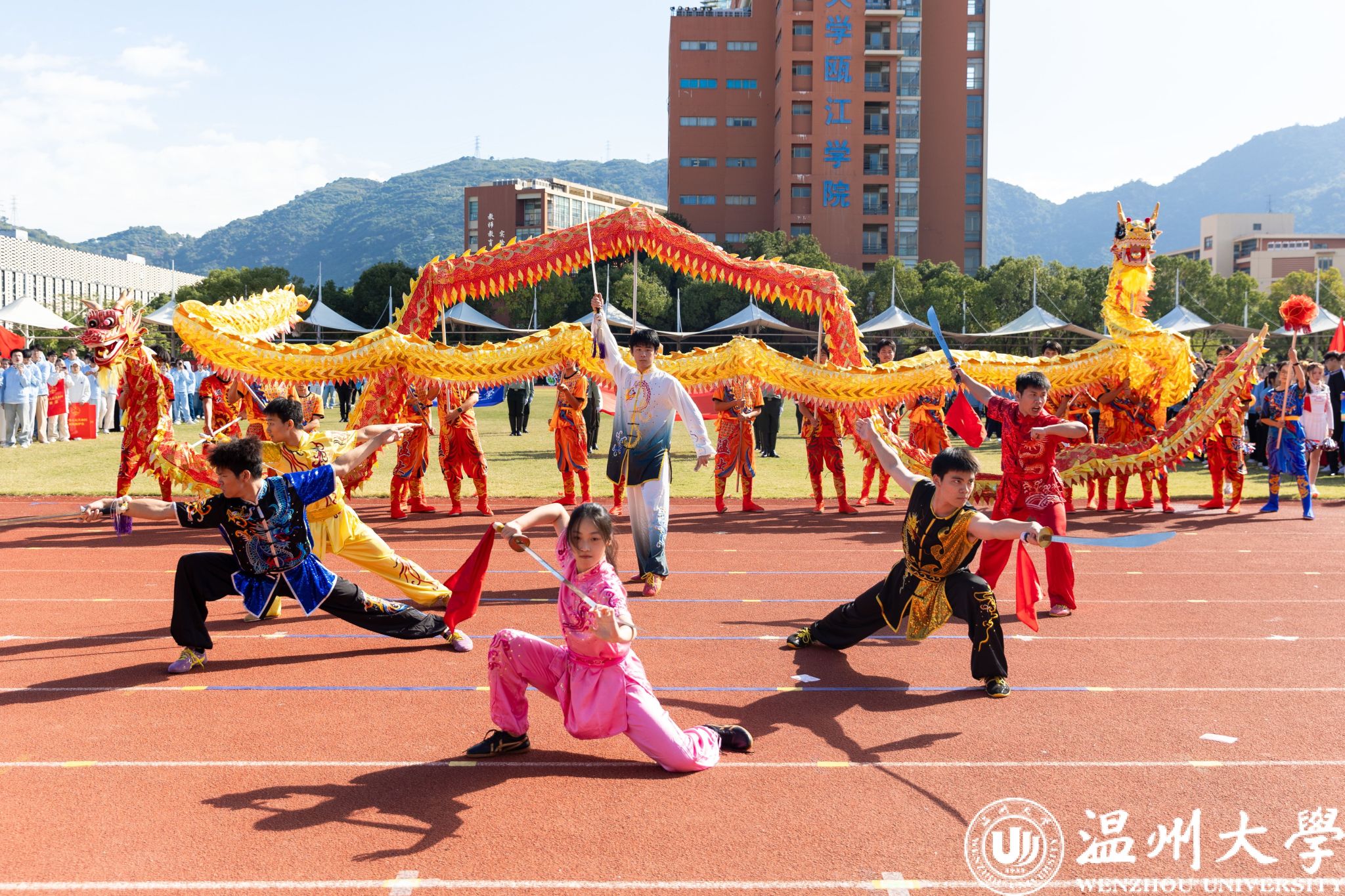 龙行龘龘,前程朤朤。舞龙表演将力量与美学的精髓完美融合,演绎出一幅幅震撼人心的视觉盛宴。龙身蜿蜒起伏,宛如游龙穿梭于云海之间,每一道弧线都彰显着温大师生团结协作、勇往直前的精神力量。