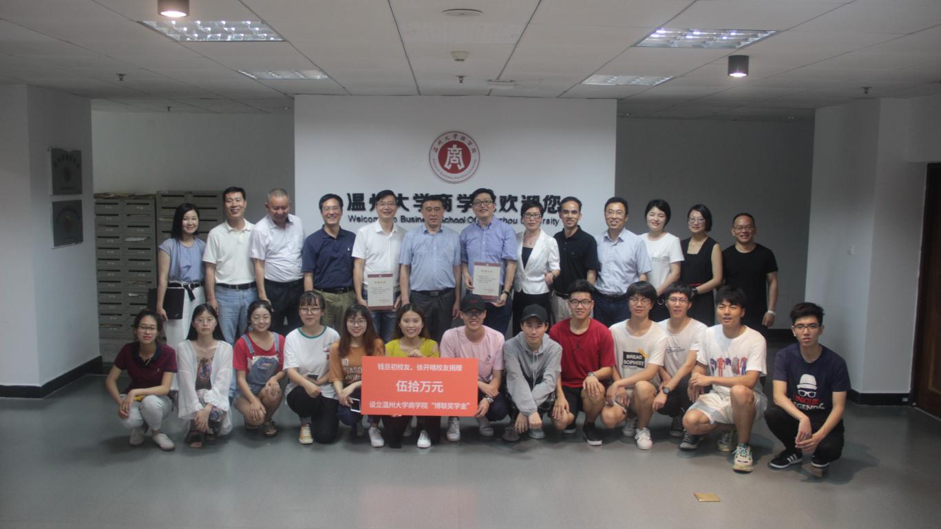 为助力校企联合育人,回馈母校的培养,5月18日下午,在日本a片 85周年校庆之际,商学院优秀校友钱旦初、徐开晴重返母校,捐款50万元设立商学院“博联奖学金”,用于激励品学兼优的商院学子。