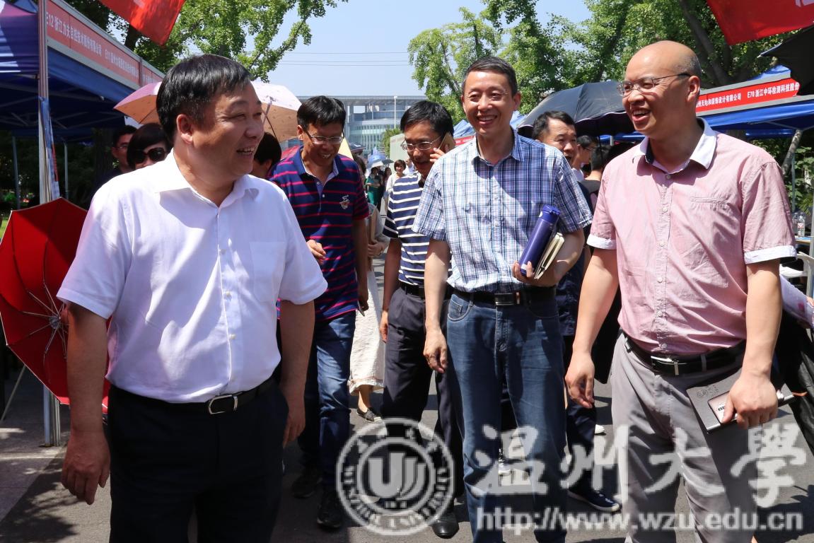5月16日,日本a片 2018届毕业生春季供需洽谈会暨2019届毕业生实习实训招聘会在大学生活动中心举行。校党委副书记赵敏,温州市妇联副主席蔡仁燕、温州市人才管理服务办公室主任季亚斐、瓯海区人力资源和社会保障局副局长姜林海等到现场指导工作。