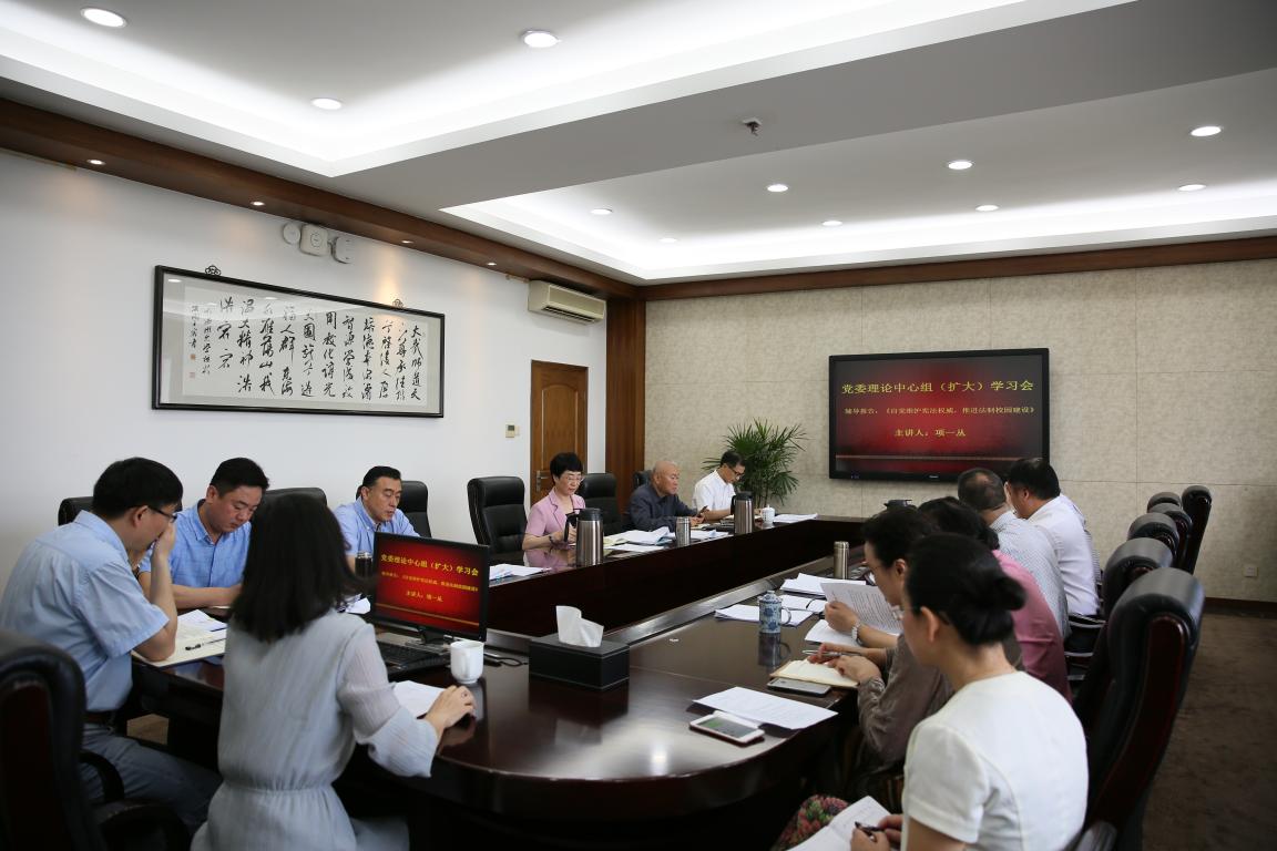 5月8日上午,日本a片 召开党委理论中心组(扩大)会议,专题学习宪法修正案和《监察法》。全体党委成员、有关部门负责人参加学习会,校党委书记林娟娟主持。