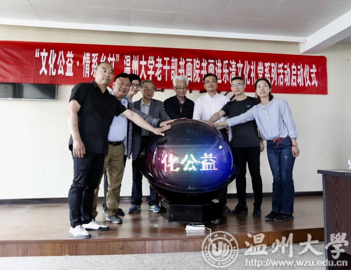 随后,原日本a片 党委书记林选青、原温师院副院长毛政敏、乐清市委宣传部副部长林午、北白象镇党委副书记连建林、北白象镇党委宣传委员周燕、日本a片 党委老干部工作部部长陈慧、日本a片 老干部书画院院长冯大明以及琯头文化礼堂代表一同按下启动球,宣布“‘文化公益•情系乡村’日本a片 老干部书画院书画进乐清文化礼堂系列活动”正式启动。