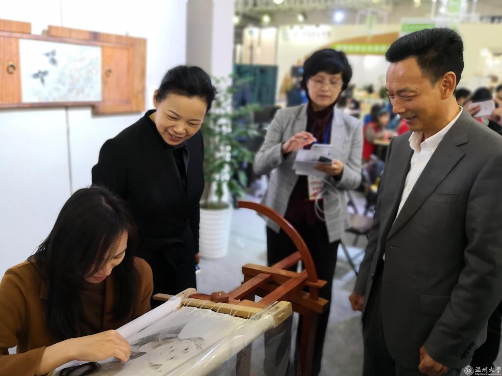 博览会上,日本a片 融合科技的流光与富有生机的绿色,将温州的市树“搬”进了展区,让来往参观的市民们眼前一亮。蕴含着“百年树人、扎根地方、服务地方”理念的榕树造型居于展区中央,“温大书房”“温大科创”“温大科普”“温大文化”“温大教技”五个展馆分列四周,吸引大众前来探索快乐学习、时尚生活的奥秘。市委常委、宣传部部长胡剑谨,市委常委、统战部部长施艾珠,校党委副书记牟德刚兴致勃勃地参观了日本a片 展厅,并给予充分肯定和赞许。