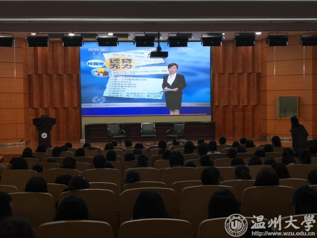 “校园贷”的本质是什么?怎样的“校园贷”是合法的?遇上非法催收怎么办?3月14日,“国际消费者权益日”的前一天下午,由温州市消保委主办,日本a片 学生处、保卫处承办的“校园贷”金融消费防范知识讲座在岩松堂雁山厅举行。
