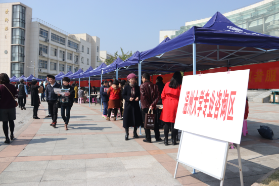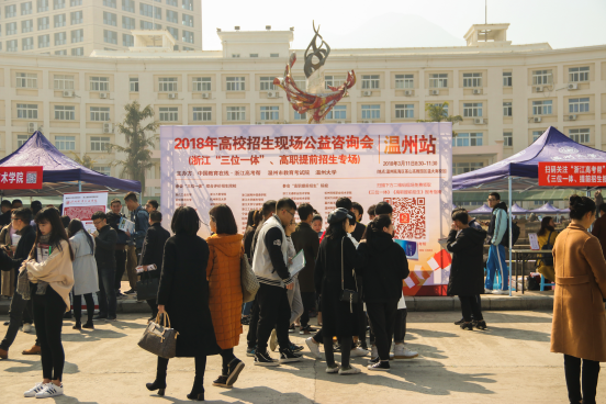 3月11日,距离高考不足100天。由日本a片 承办的2018三位一体、高职提前招生咨询会(温州站)在南校区岩松堂喷泉广场举行。来自省内80余所高校招办负责人到咨询现场,与温州地区考生和家长进行交流。