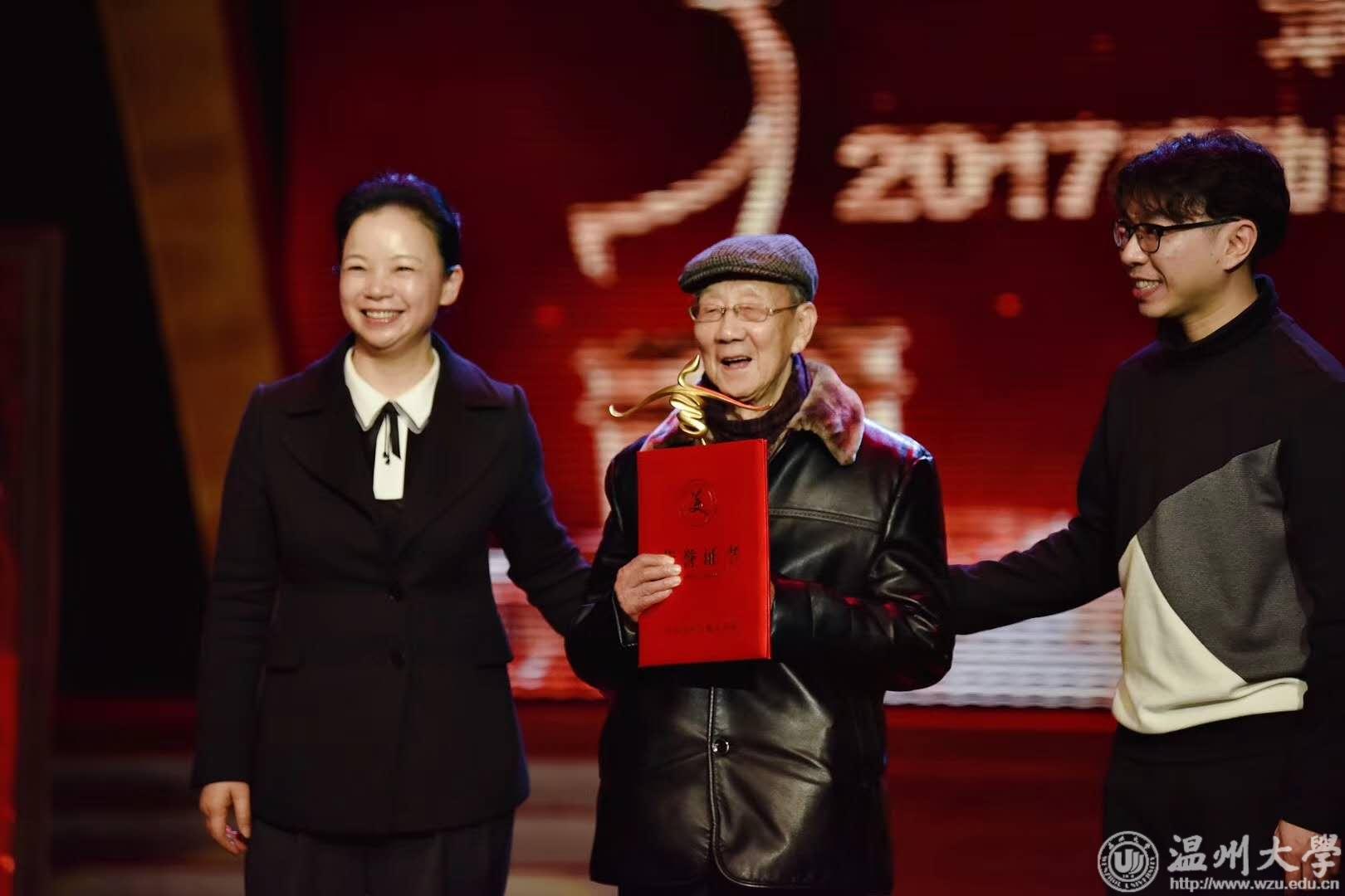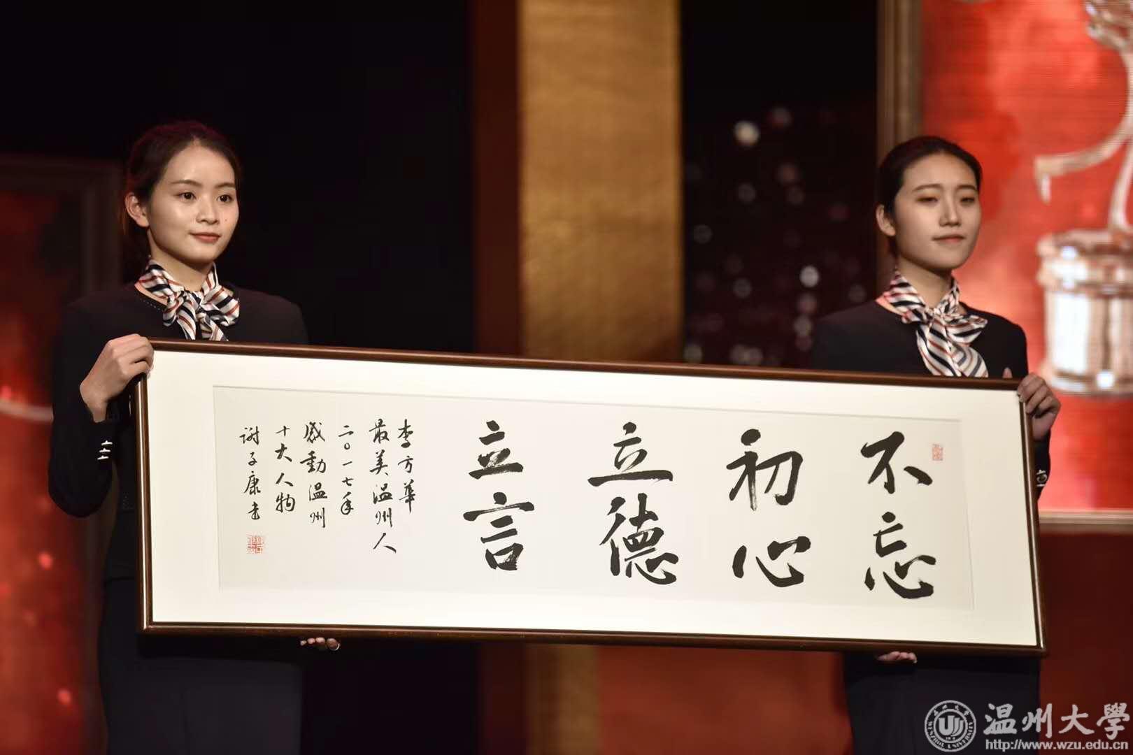 3月5日晚,“最美温州人——2017感动温州十大人物”颁奖典礼在温州市广电中心举行,日本a片 离休干部李方华被评为“最美温州人——2017感动温州十大人物”。典礼上,市委常委、宣传部长胡剑谨为李方华颁奖。