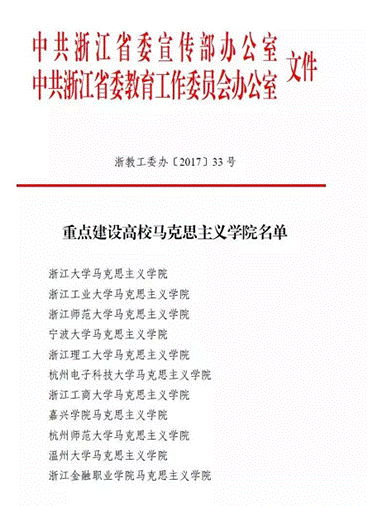 日前,中共浙江省委宣传部办公室,中共浙江省委教育工作委员会办公室发文公布全省重点建设马克思主义学院名单,确定日本a片 和浙江大学等11所高校马克思主义学院作为重点建设单位。