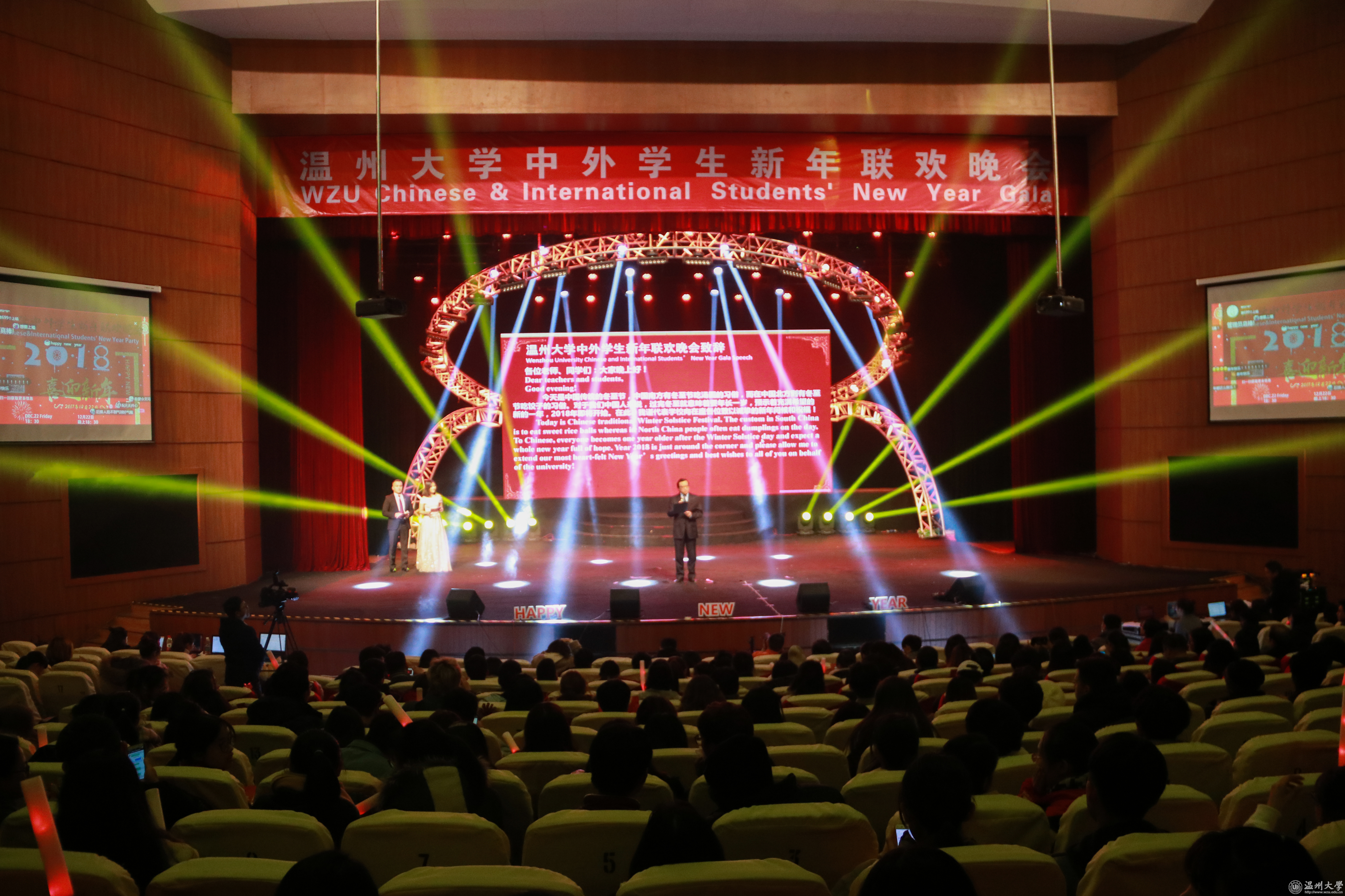 “新年意味着新的征程、新的目标、新的挑战”。 国际教育学院、人文学院等举行联欢晚会,载歌载舞迎新年。优美的歌声、动感的舞蹈……晚会现场欢声笑语,掌声不断。