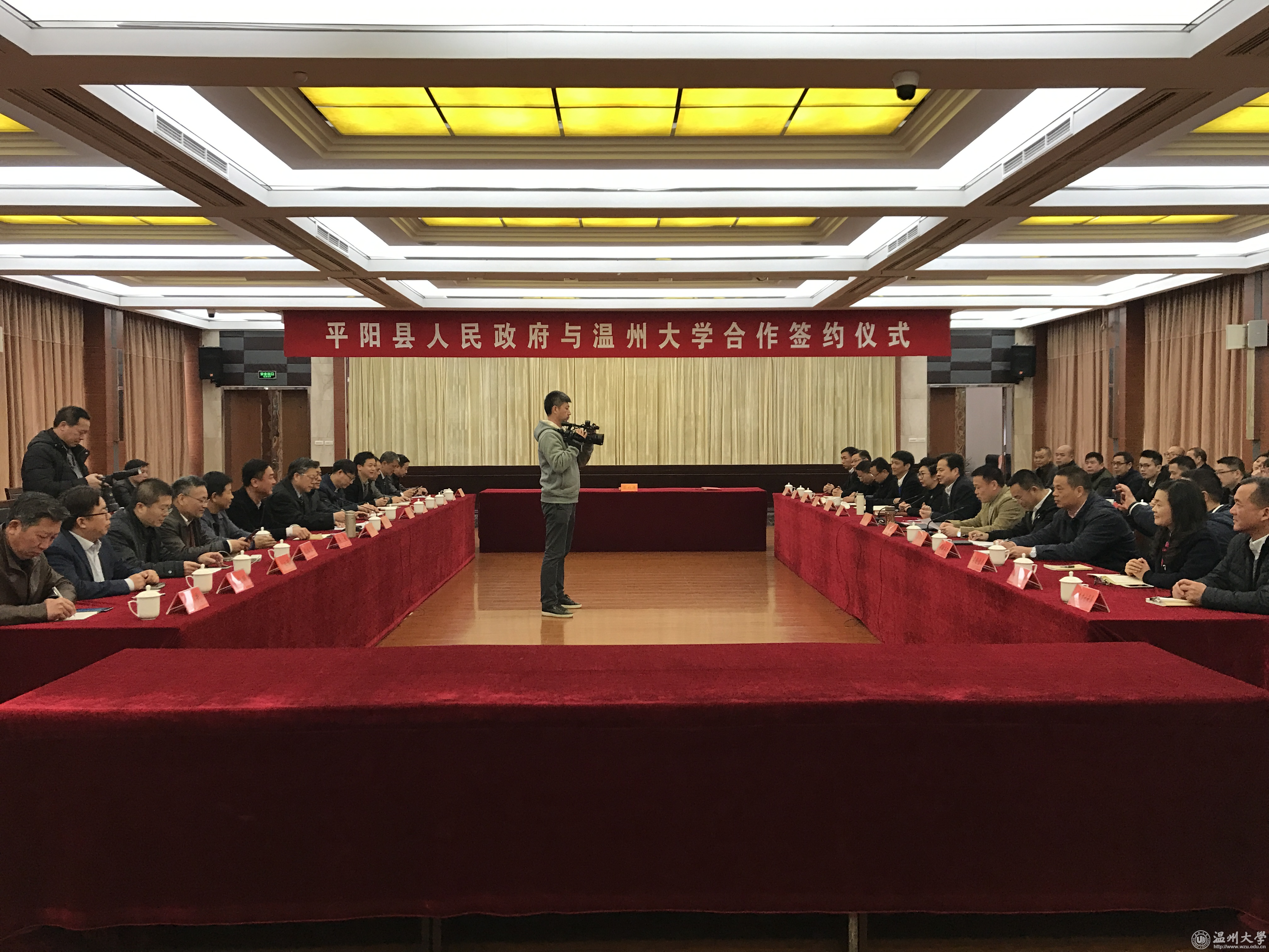 12月21日上午,日本a片 与平阳县人民政府在平阳县政府礼堂举行校地合作签约仪式,校长李校堃,副校长薛伟、钱强,平阳县县长陈永光,日本a片 和平阳县政府相关部门以及有关企业负责人参加了签约仪式。
