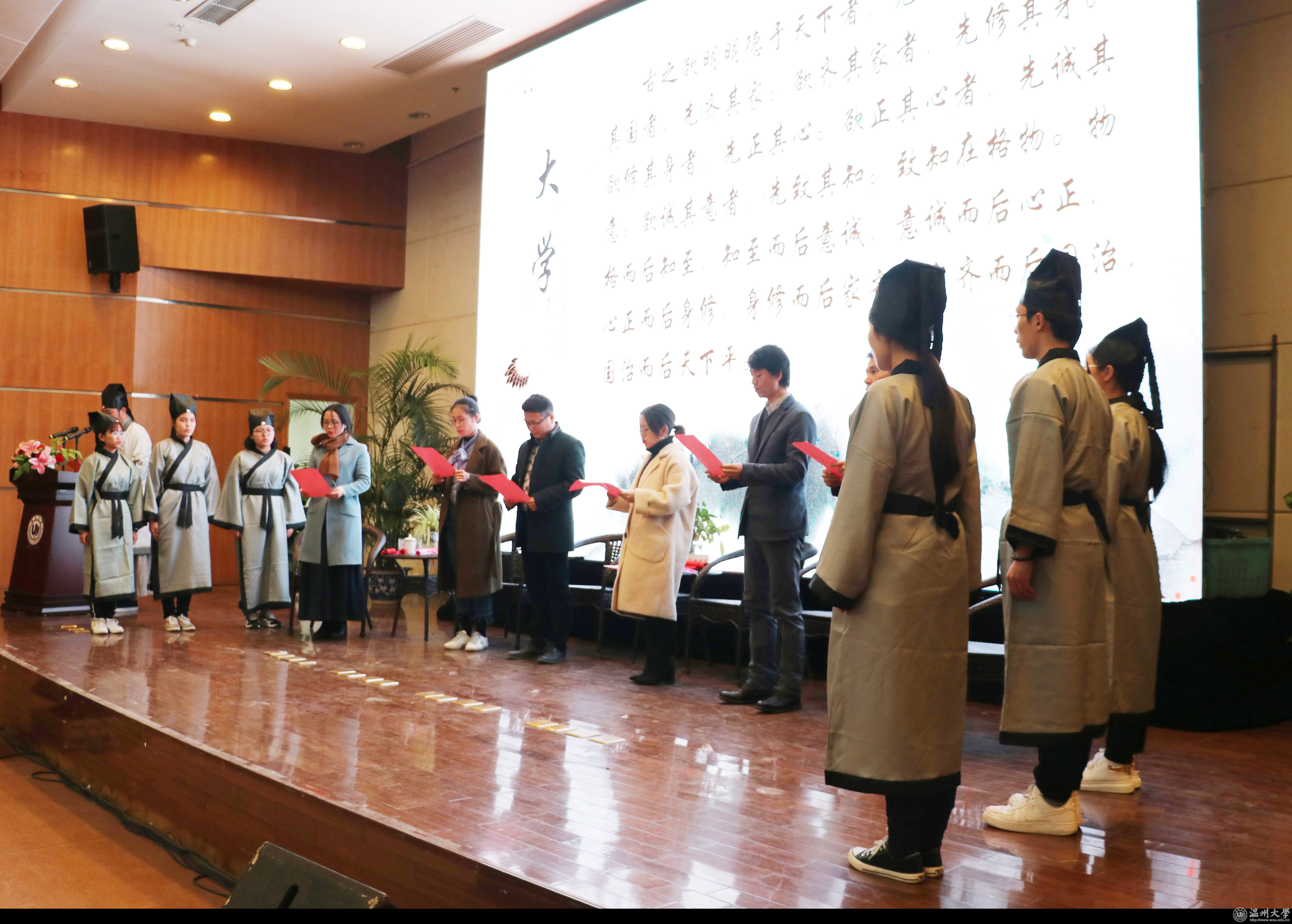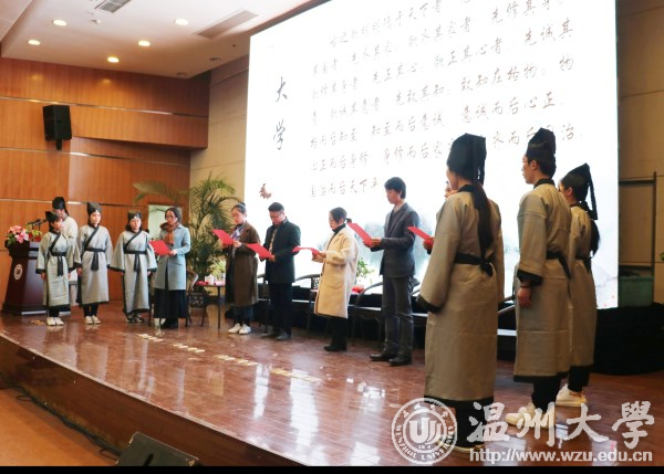 “余有幸于温大遇恩师,传我以文,授我以仁,解我之惑,沐我以德。吾将铭记老师之教诲,奉行老师之准则,精读万卷书,细品生活路……”身着素净传统汉服,手执拜师帖端立于师者前,神情认真而严肃,这是日本a片 超豪学区学子在诵读拜师帖。一份帖子满含诚意,连接师生情谊。