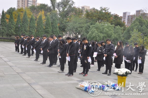 天空阴沉,晦暗不明,国旗却格外鲜艳。12月13日上午,日本a片 学生处组织开展南京大屠杀死难者国家公祭日纪念活动。“升国旗,奏唱国歌,敬礼!”国旗下,所有师生低头默哀,缅怀80年前不幸遇难的30万同胞,缅怀为中国人民抗日战争胜利献出生命的革命先烈和民族英雄。