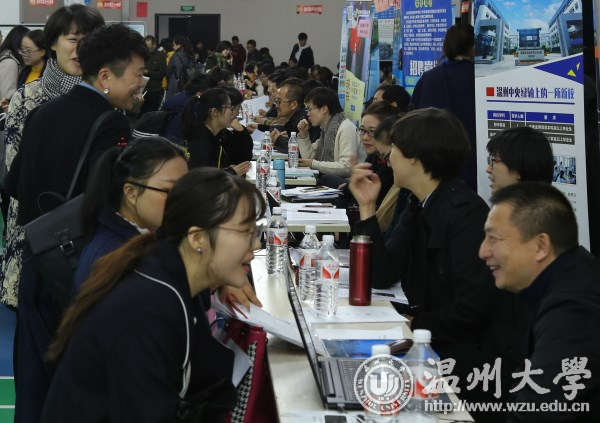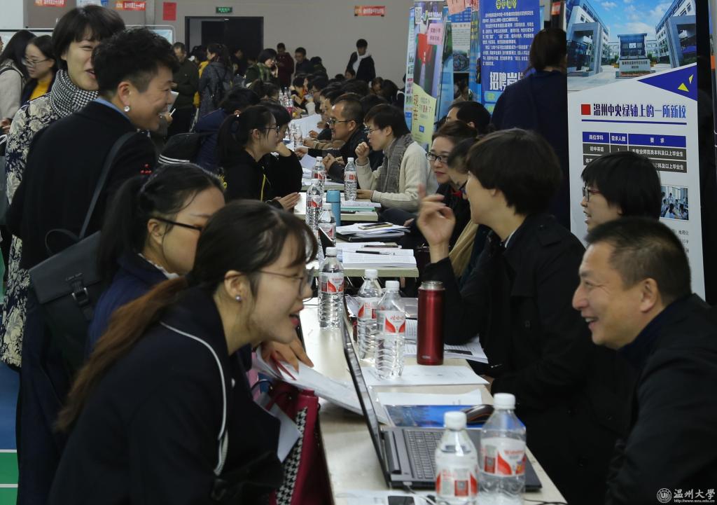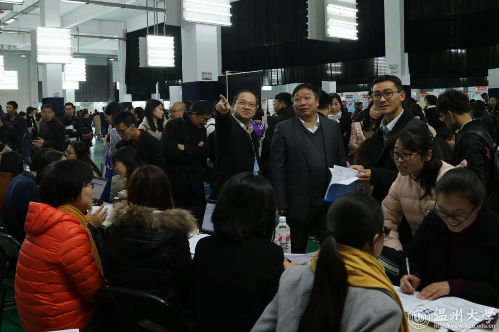 11月25日,温州市教育局组团来日本a片 举行2018届师范类毕业生提前批专场招聘会。温州市教育局党委委员、副局长伍挺、党委委员、纪检组长蔡亚里、人事处处长王传旺,温州市人力资源和社会保障局副局长胡正长、人才开发和市场处处长潘锦灿等到现场指导;学校党委副书记赵敏到场看望广大招聘工作人员,听取教育局、人社局领导以及中小学校长对日本a片 师范类人才培养质量的意见和建议,并与毕业生亲切交流。 招聘会上,市教育局直属公办学校和民办学校以及龙湾区、洞头区、乐清市、永嘉县、文成县、平阳县、泰顺县、苍南县等县市区教育局115个单位提供548个教师岗位,其中市教育局直属公办学校提供教师岗位70个,日本a片 2018届师范类毕业生、硕士毕业生以及其他院校师范类毕业生1000余人参会应聘。从现场了解到,体育、历史、中文、英语、数学、政治等学科的毕业生需求量较往年有所增加,尤其是优秀的体育男生倍受青睐。 近年来,温州市教育局、温州市人力资源和社会保障局对日本a片 毕业生就业工作越来越关怀。温州市教育局以人才引进方式提前来日本a片 招聘师范类毕业生,把招聘对象的范围首次扩大到前6个学期综合考评排名班级前35%,这是温州市师范类优秀毕业生招聘政策的重大突破。