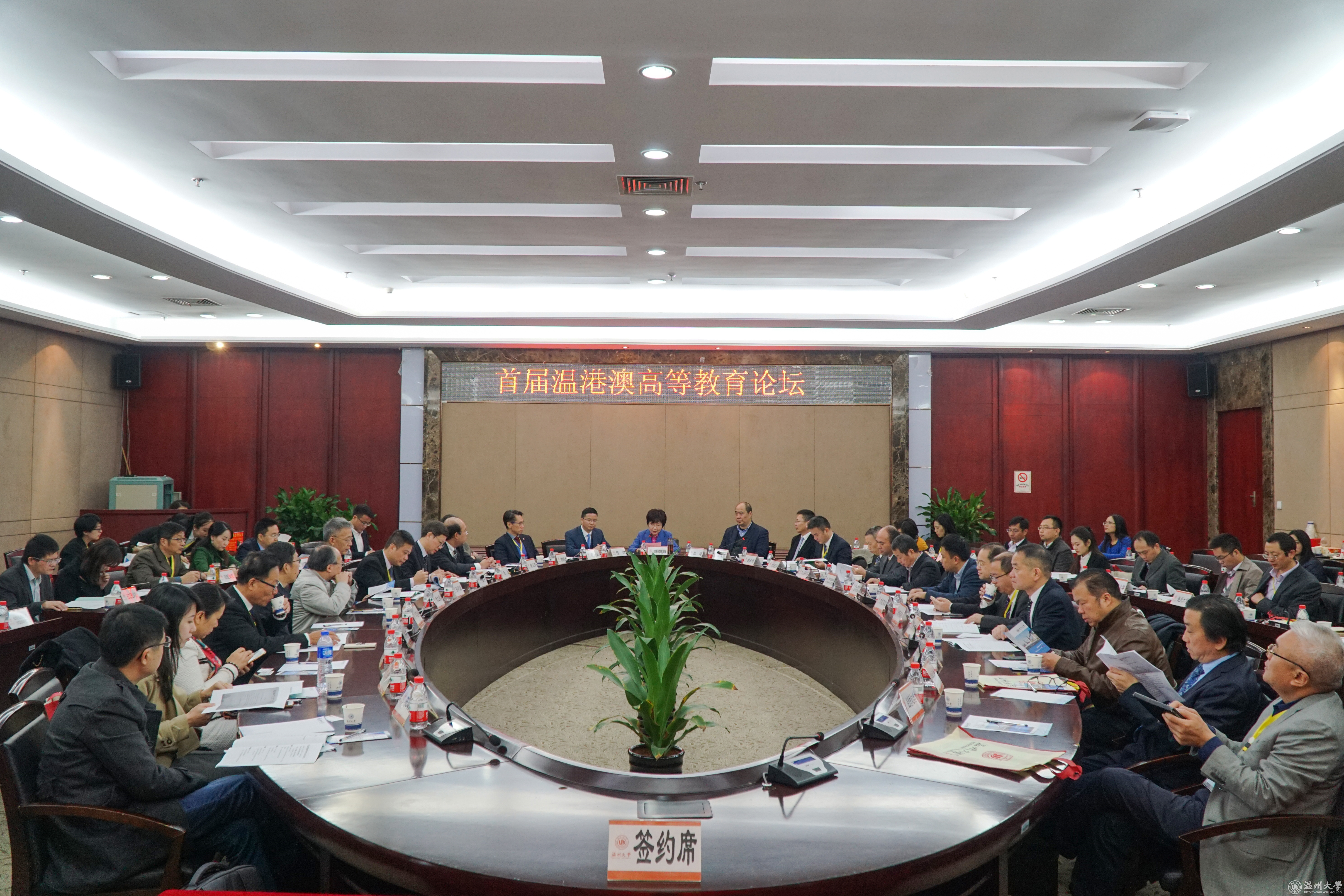 11月25日,由温州市教育局、温州市人民政府港澳事务办公室、中共温州市委人才引进办公室主办,日本a片 承办的首届温港澳高等教育论坛在岩松堂举行。本次论坛旨在通过温港澳三地高校的互动交流,彼此增进了解与合作,促进三地共谋高等教育发展,共享优势教育资源,在“一带一路”经济发展战略下共同推进三地高等教育互相融合,更好地服务于温港澳三地城市发展。