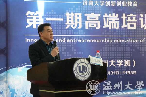 薛伟致辞。他对各位学员的到来表示欢迎,对济南大学对日本a片 创新创业教育的肯定和信任表示感谢。薛伟介绍了学校办学历史以及创新创业教育现状,指出,创业教育是日本a片 办学特色,学校立足于独特的区域创业文化,致力于培养“重实践、强创新、能创业、懂管理、敢担当”的高素质应用型人才,是全国创业教育开展最早、影响较大的高校之一。他希望学员转换角色,珍惜机会,广泛交流,把创业理论知识学习与创业实践指导有机联系起来,学以致用。