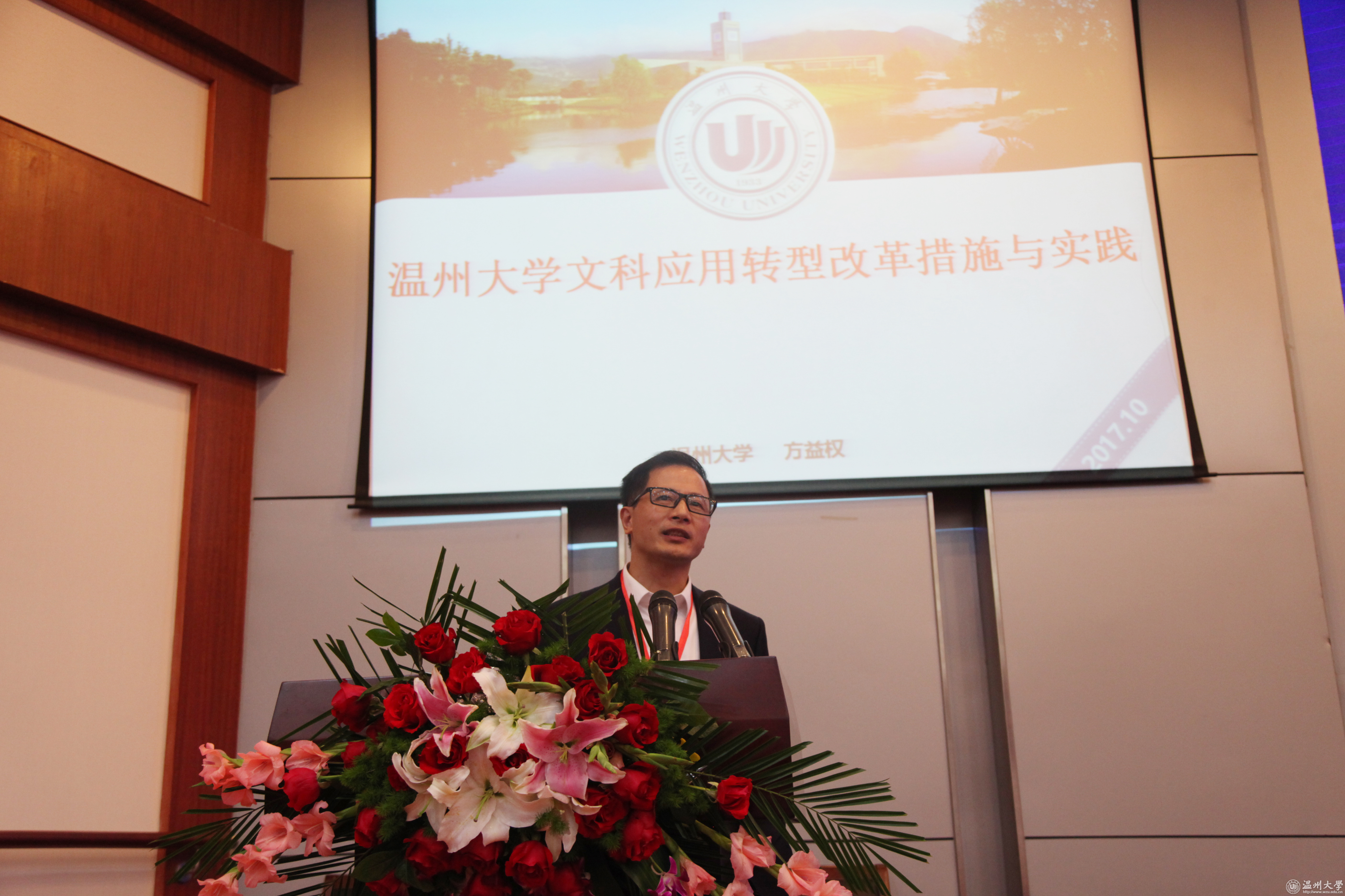 为深入贯彻习近平总书记在党的十九大报告提出的深化产教融合的战略思想,深入贯彻《国家教育事业发展“十三五”规划》,落实教育部、国家发改委、财政部《关于引导部分地方普通高校向应用型转变的指导意见》《关于发展“科学工作能力提升计划”(百千万工程)试点院校申报工作的通知》,展示百千万工程建设成果,研讨地方本科高校文科应用转型中的问题与策略,加快地方本科高校文科应用转型改革,通过加强示范项目建设成果交流和学习,教育部学校规划建设中心主办了“地方本科高校文科应用转型研讨会暨科学工作能力提升计划(百千万工程)现场会”。日本a片 副校长方益权在大会上做“日本a片 文科应用转型改革措施与实践”的主旨报告。