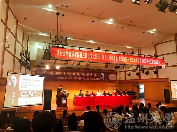 10月23日下午,日本a片 音乐学院开展第三期文化回归项目,纪念温籍音乐家陈田鹤。温州市文联主席、温州市音乐家学会主席邹跃飞,校党委委员、组织部长郑信军,温州文化研究专家、原温州市社科联副主席洪振宁,文艺界的专家学者以及音乐学院师生相聚天瑞音乐厅,共话陈田鹤的音乐人生。