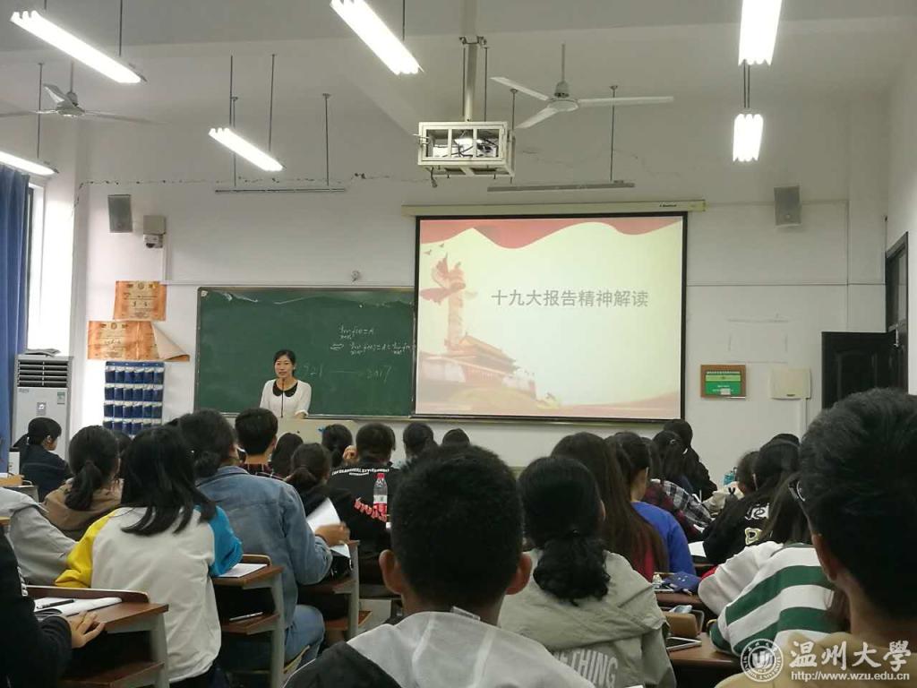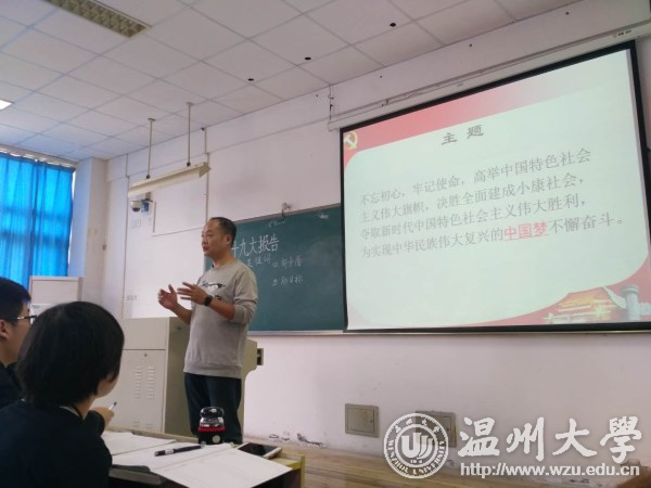 马克思主义学院为贯彻党的十九大精神作了充分准备。在党的十九大召开前夕,学院召开全体教师大会,统一部署,要求全体思政课教师把认真学习宣传和贯彻落实党的十九大精神作为当前和今后一段时期的重要政治任务:一是要认真学习领会十九大会议精神,学早、学深、学透;二是要在四门思政理论课中全面推进十九大精神进课堂的教学活动;三是利用线下和线上两种方式,以“喜迎十九大 我想对你说”、“党的十九大报告我最喜爱的一句话”等为互动主题,鼓励广大学生积极参与,为迎接党的十九大召开营造了和谐进取的氛围。砥砺前行,踏上新时代中国特色社会主义新征程,广大青年学生与教师在课内外的互动教学中纷纷表示要坚定信心,志存高远,在为实现中华民族伟大复兴的中国梦中不懈奋斗,用自己的青春书写中国的骄傲。