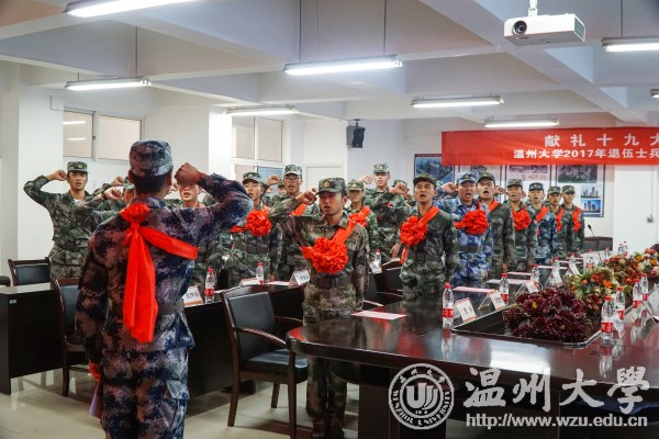 会议在安排全体人员观看十九大开幕式的精彩画面和新闻联播对习近平总书记对新入伍学生回信的报道后,5位退伍学生作事迹报告。他们结合自己对习总书记回信精神的深刻理解,讲述了自己从一名普通大学生一步步成长为一名优秀解放军战士的经历,表达了退伍不褪色、退伍不退志,立志回校后传承部队良好作风和传统的决心。发言学生言语恳切、情感饱满、斗志昂扬,一致表示将认真学习党的十九大精神和习近平总书记的回信精神,怀着“打起背包就出发”的坚定信念,在未来续写新的荣光!随后,今年退伍回校的20名学生宣誓加入学校学生军人俱乐部。
