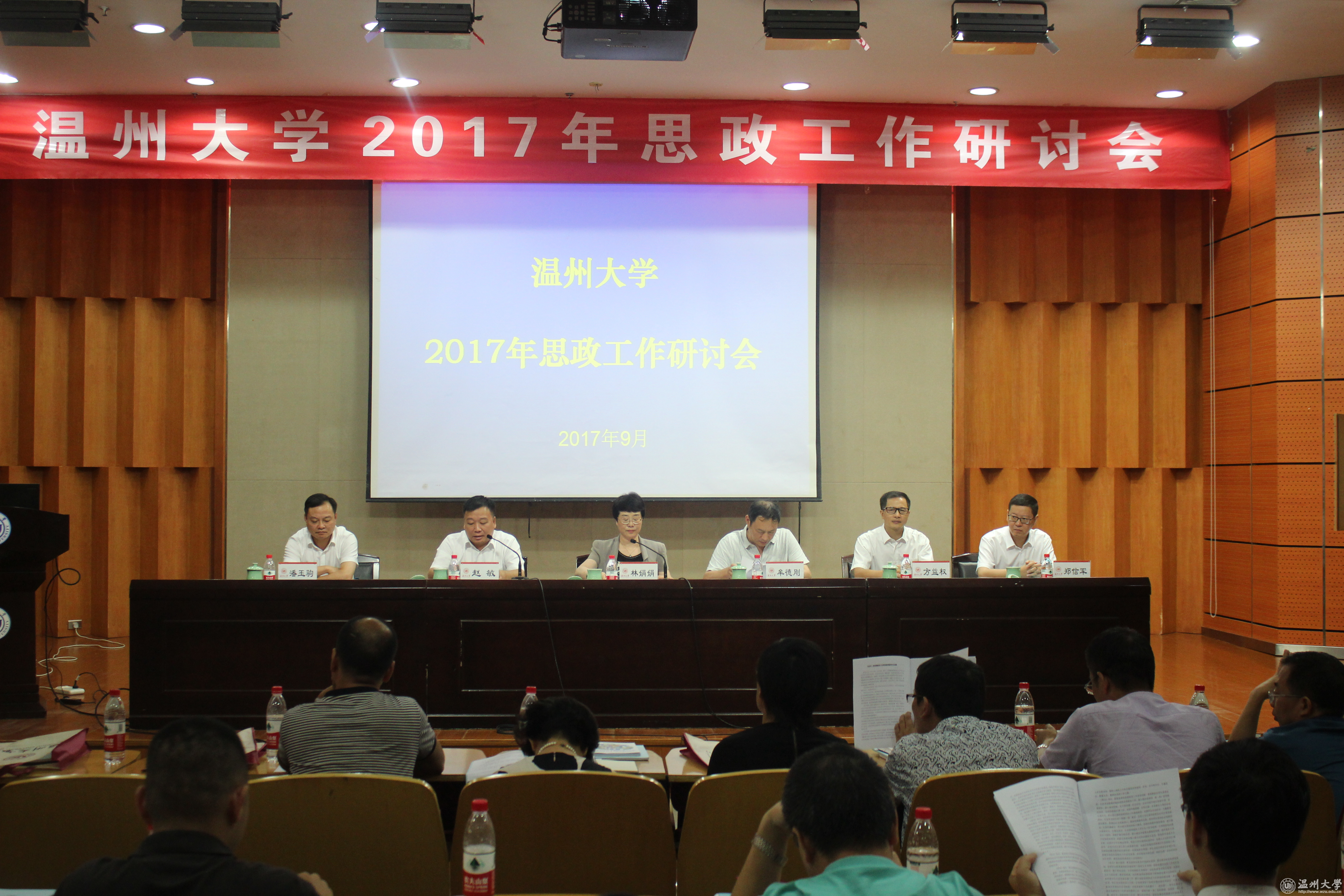 9月12日,日本a片 2017年思政工作研讨会在雁山厅举行。校党委书记林娟娟,副书记牟德刚、赵敏,副校长方益权,党委委员、宣传部部长潘玉驹,党委委员、组织部部长郑信军,学工委委员,研工部、学生处、就业处、团委等有关部门负责人,各学区、学院书记、副书记,校本部全体辅导员,瓯江学院辅导员代表共140余人参加会议。