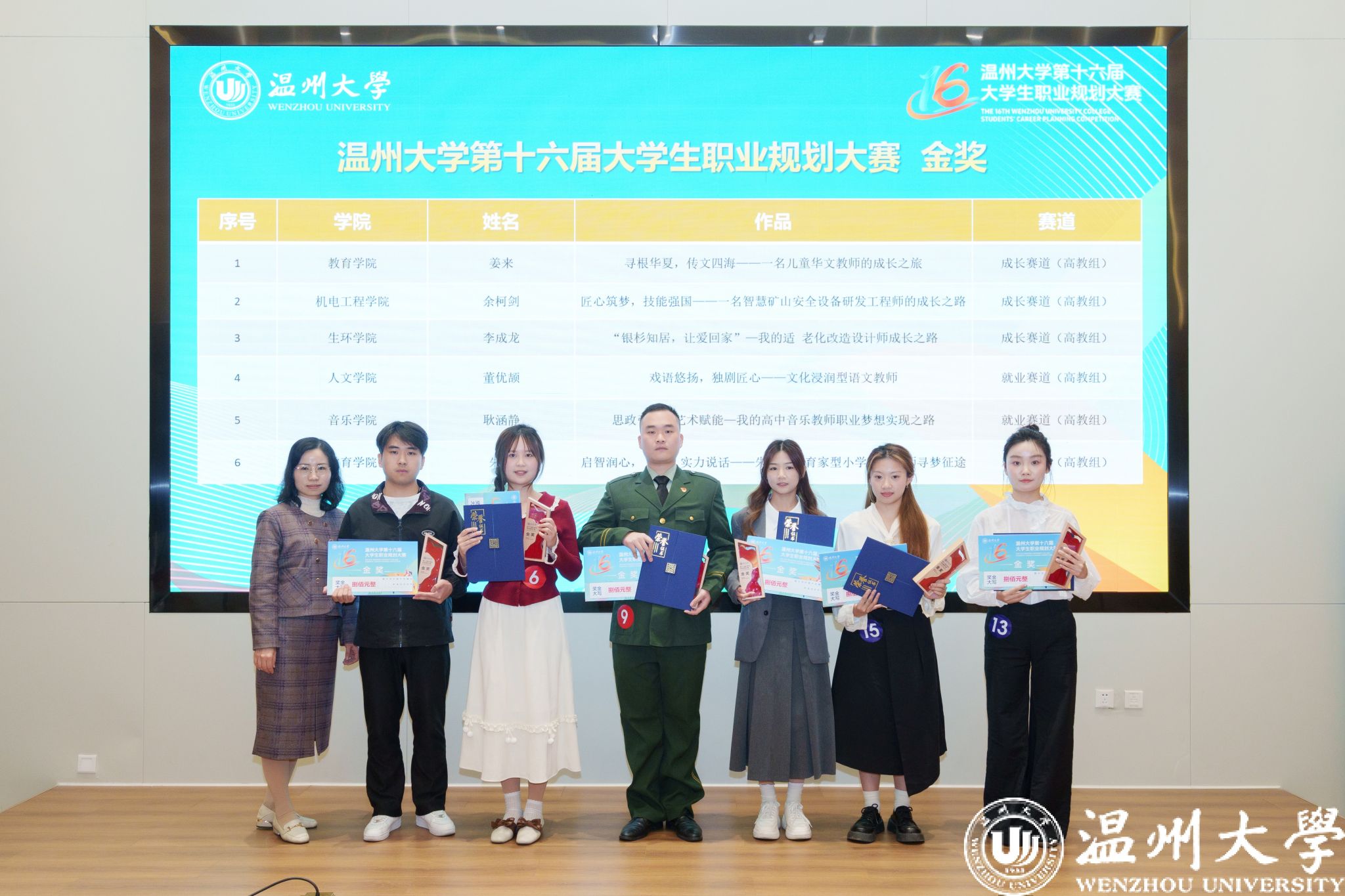 最终,经过选手现场展示、评委提问、专家点评等环节,《寻根华夏,传文四海——一名儿童华文教师的成长之旅》等6个作品获得金奖;《海韵匠心,筑梦深蓝——一名海洋技术工程师的成长之旅》等9个作品获得银奖;《“以武润心、培根筑魂”——做一名传统体育方向的小学体育教师》等15个作品获得铜奖;付睿等6位老师获评为“优秀指导教师”;马克思主义学院等6个学院获得“优秀组织奖”。