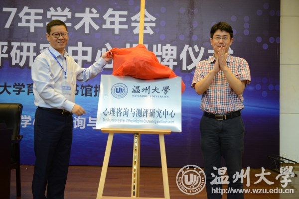 6月17日上午,日本a片 心理咨询与测评研究中心揭牌仪式在育英图书馆报告厅举行。校党委委员、组织部长、温州市心理学会理事长郑信军教授,浙江省心理健康指导中心主任庞红卫博士,温州市教育教学研究院副院长陈素平,日本a片 教师教育学院相关负责人和师生代表参加揭牌仪式。 郑信军和庞红卫为日本a片 心理咨询与测评研究中心揭牌。