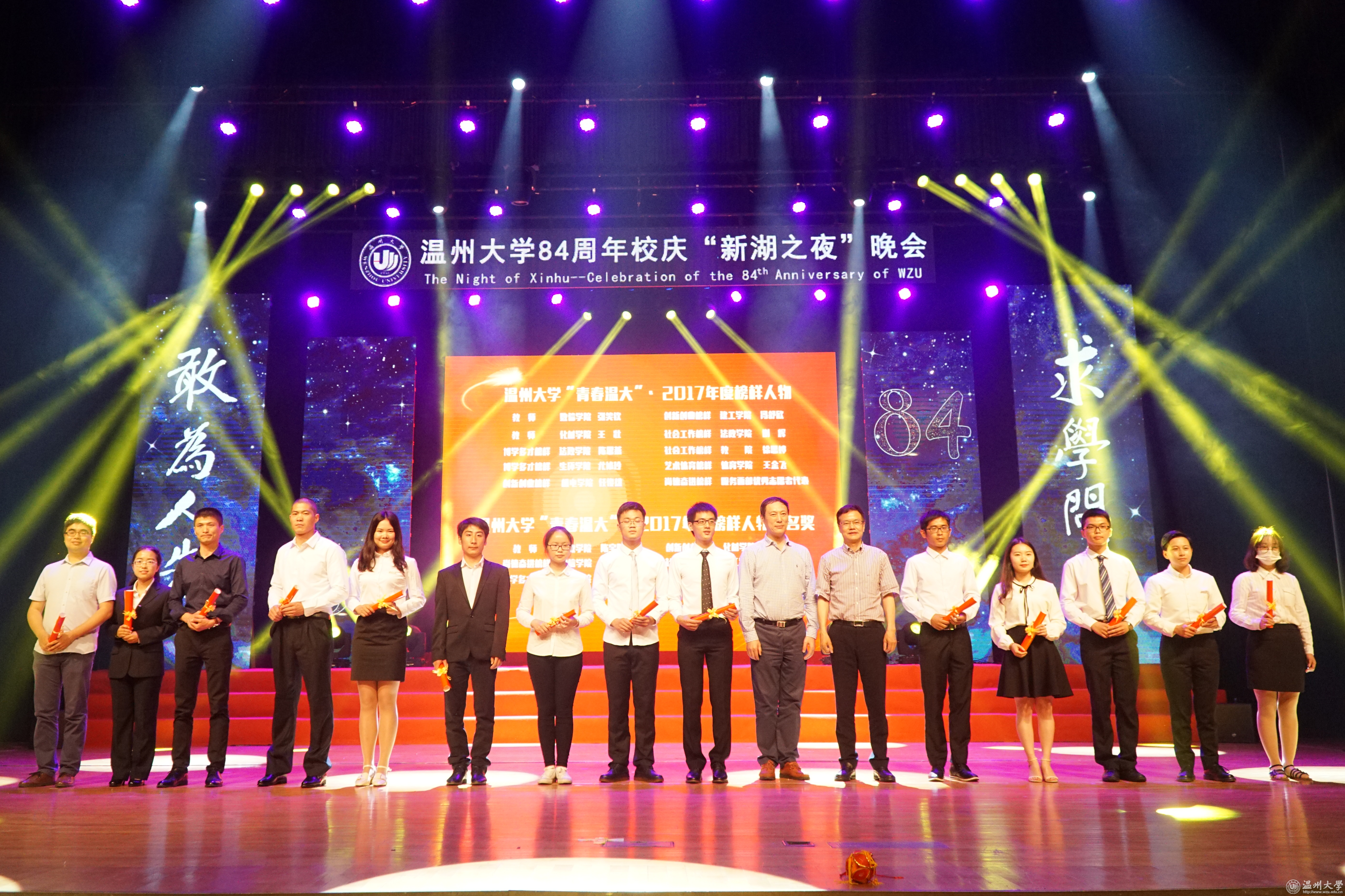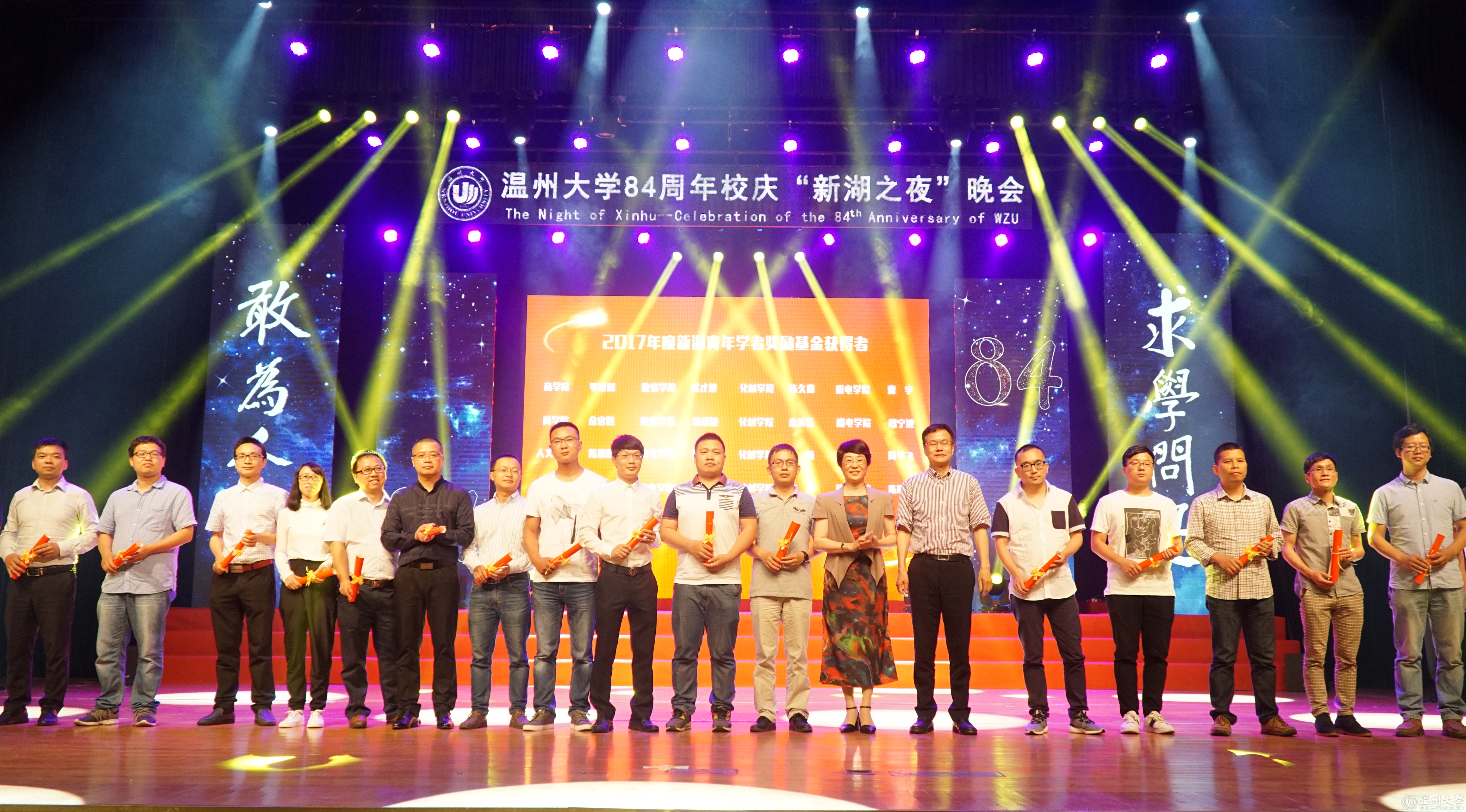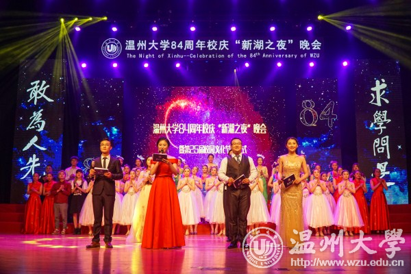 八十四年春风化雨,八十四年春华秋实。19日晚,日本a片 84周年校庆“新湖之夜”晚会暨第25届校园文化节开幕式举行。晚会上,对2017年度新湖青年学者奖励基金获得者、2017年度“青春温大”榜样人物进行表彰。同时还举行了2008年北京奥运会火炬手、校友池卢洁火炬捐赠仪式和浙江东海潮实业集团有限公司总裁、校友王孝安捐赠500万注入“东海潮助学助教创新奖励基金”仪式。