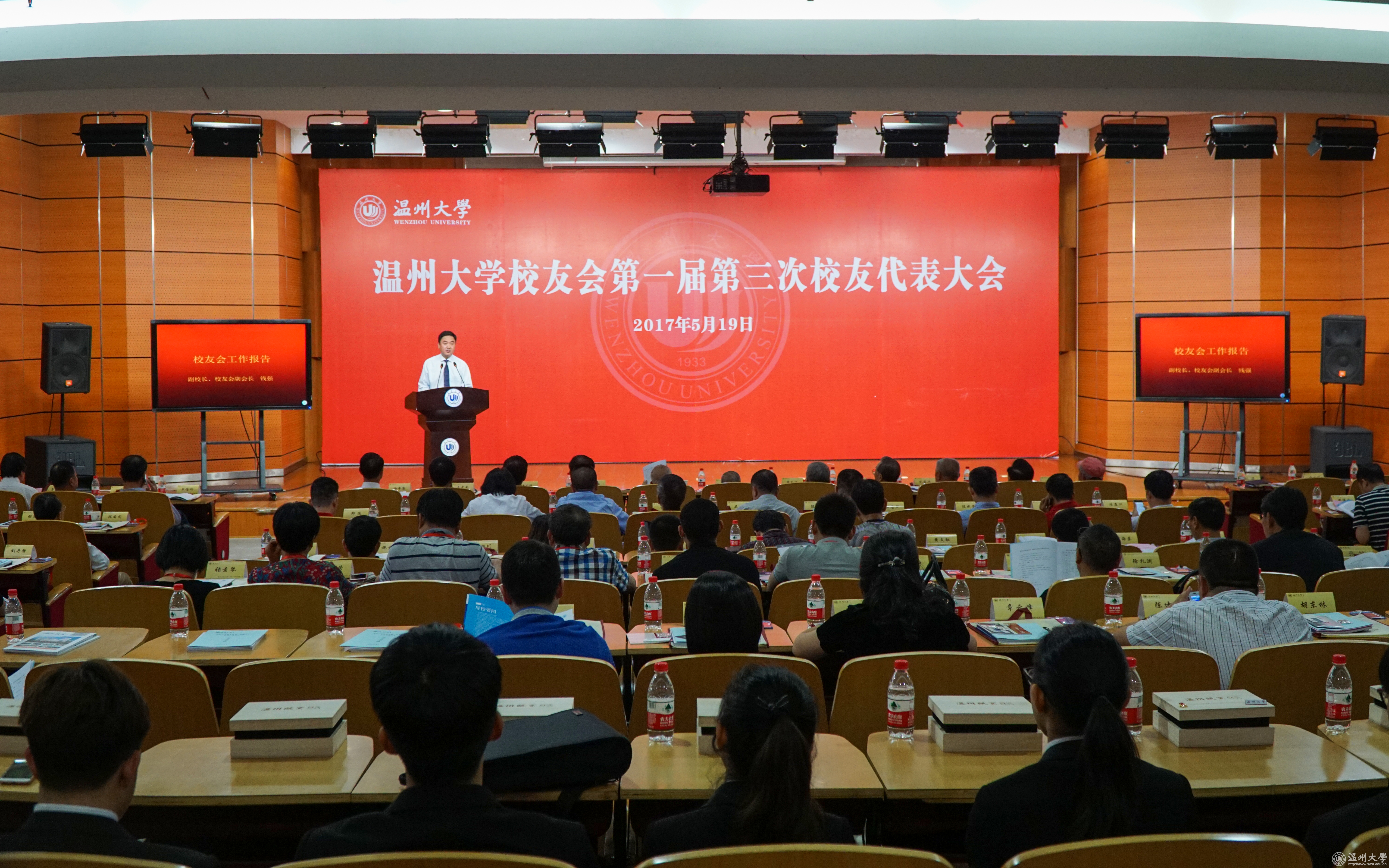 副校长蔡曙光主持召开日本a片 校友会第一届第三次校友代表大会。校领导牟德刚、钱强、日本a片 教育发展基金会理事长黄伟, 副会长叶正猛、胡永明、金平亮,顾问代表,常务理事,秘书长、副秘书长;各地校友会会长、秘书长;校友代表;学校相关职能部门、各学院负责人参加会议。副校长、校友会常务副会长钱强作《校友会工作报告》;北美校友会、上海校友会、杭州校友会、温州市直校友会负责人作经验交流。会议增补第一届理事会常务理事、理事、副秘书长。会上还举行了“师-友”计划启动仪式。