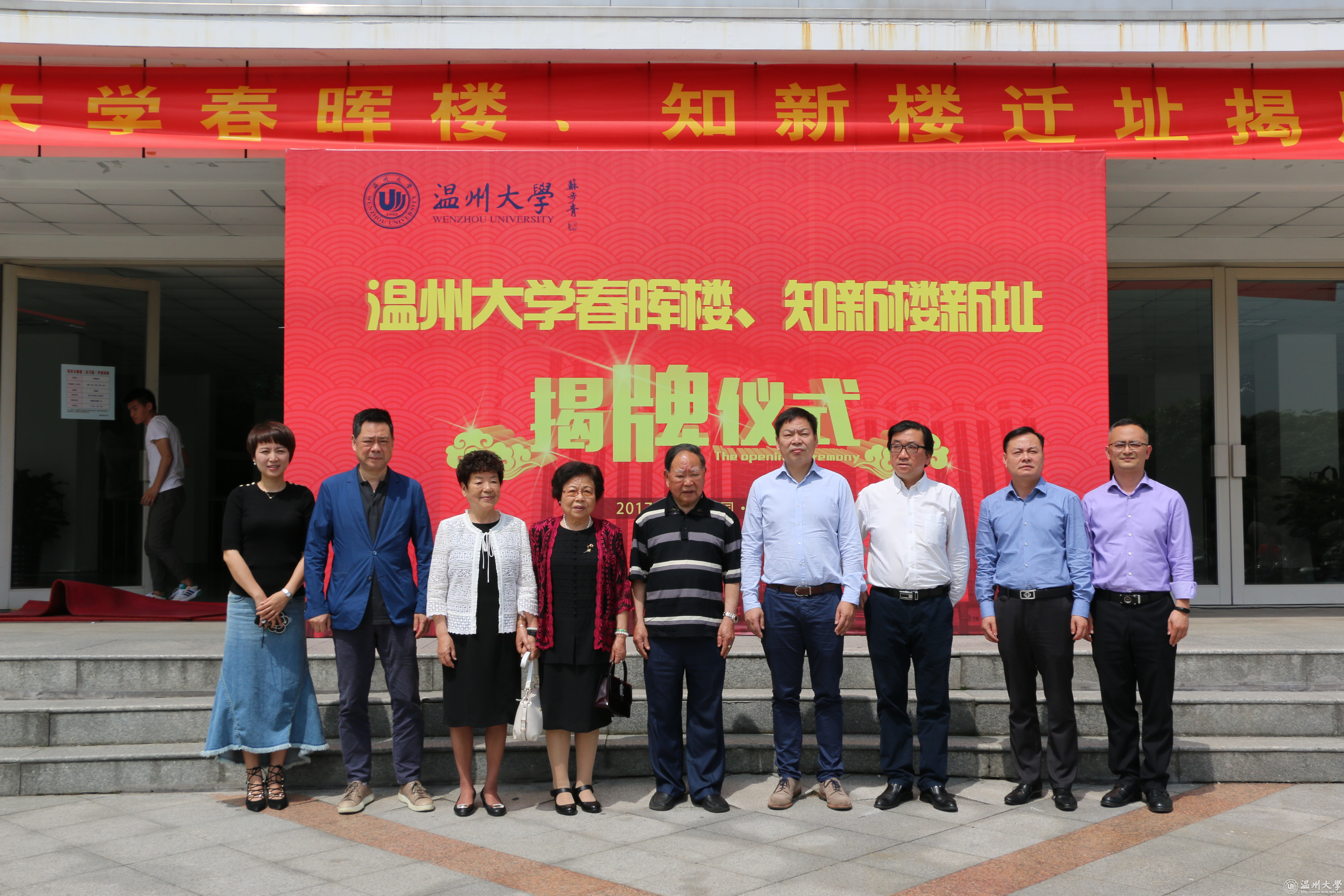 为铭记潘娟妹女士一家、刘旦宅先生兴学育才的高尚精神和爱国爱乡的赤子情怀,铭记他们关爱和支持日本a片 发展的深情厚谊,学校将茶山校区机电学院所在的6号楼更名为“春晖楼”、建工学院所在的7号楼更名为“知新楼”,以永记他们的嘉名和善举。5月10日上午,日本a片 “春晖楼”“知新楼”新址揭牌仪式举行。潘娟妹女士及家人、老校长魏萼清、副校长蔡曙光出席迁址仪式,校党委委员、宣传部部长潘玉驹主持。