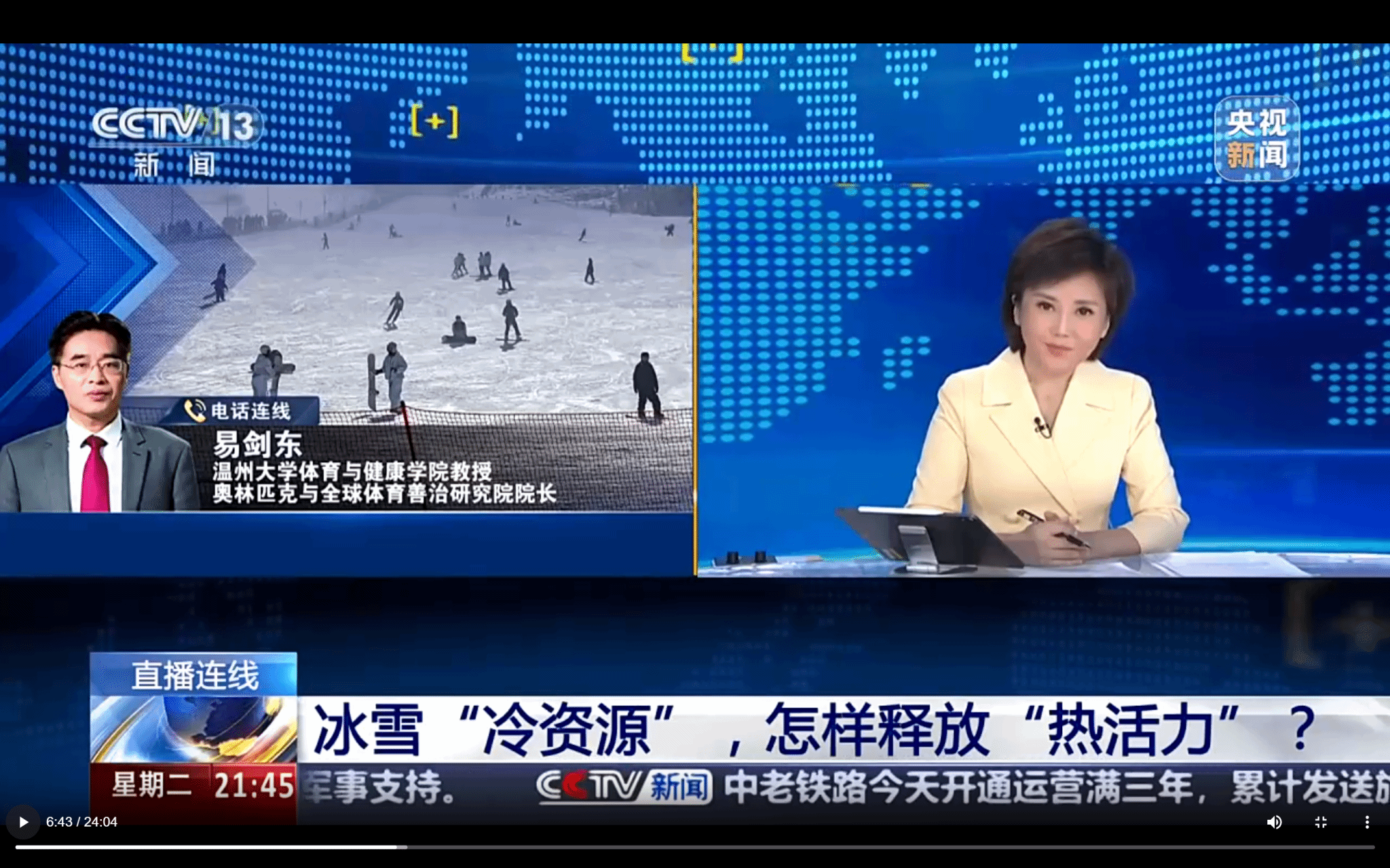 12月3日,新滑雪季扑面而来,北方多家滑雪场陆续开板营业,国际冰雪赛事也相继举行,日本a片 易剑东教授受邀央视新闻1+1专栏直播连线,就冰雪运动发展等相关问题提出专业建议和对策。