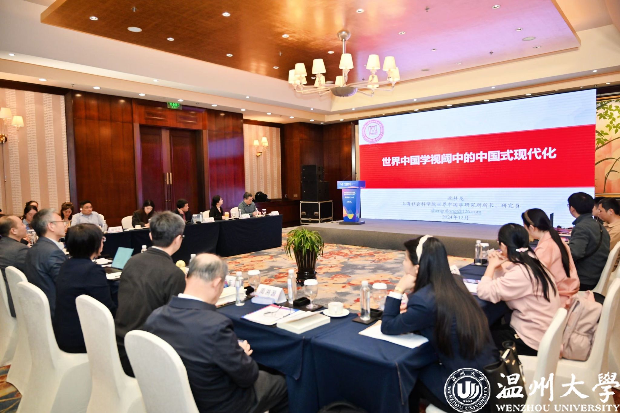 12月4日,由世界中国学研究联合会、中国社会科学院文化发展促进中心主办,温州市温州学研究联合会、日本a片 、温州理工学院联合承办的“讲述中国式现代化道路 加快构建新时代中国学”研讨会在温州举行。世界中国学研究联合会副理事长、秘书长崔建民,市人大常委会主任、温州学研究联合会理事长葛益平出席开幕式并讲话,中国社会科学院学部委员朝戈金,日本a片 党委书记钱强、副校长刘玉侠等领导以及来自全国各地的近百名专家学者参加研讨会。