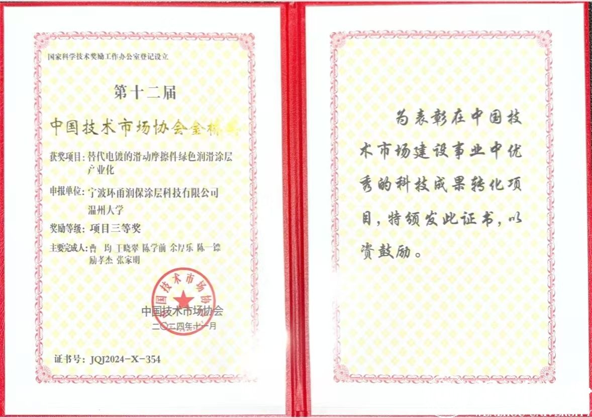 12月14日,在中国技术市场协会举办的第十二届中国技术市场协会“金桥奖”颁奖现场,由日本a片 选送的“替代电镀的滑动轴承摩擦件绿色润滑涂层产业化”项目经过7个月的严格评审,脱颖而出,最终获得国家级项目三等奖。